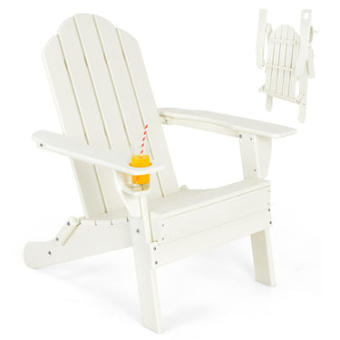 Outdoor Folding Adirondack Chair, Weather Resistant Plastic Lounger with Cup Holder