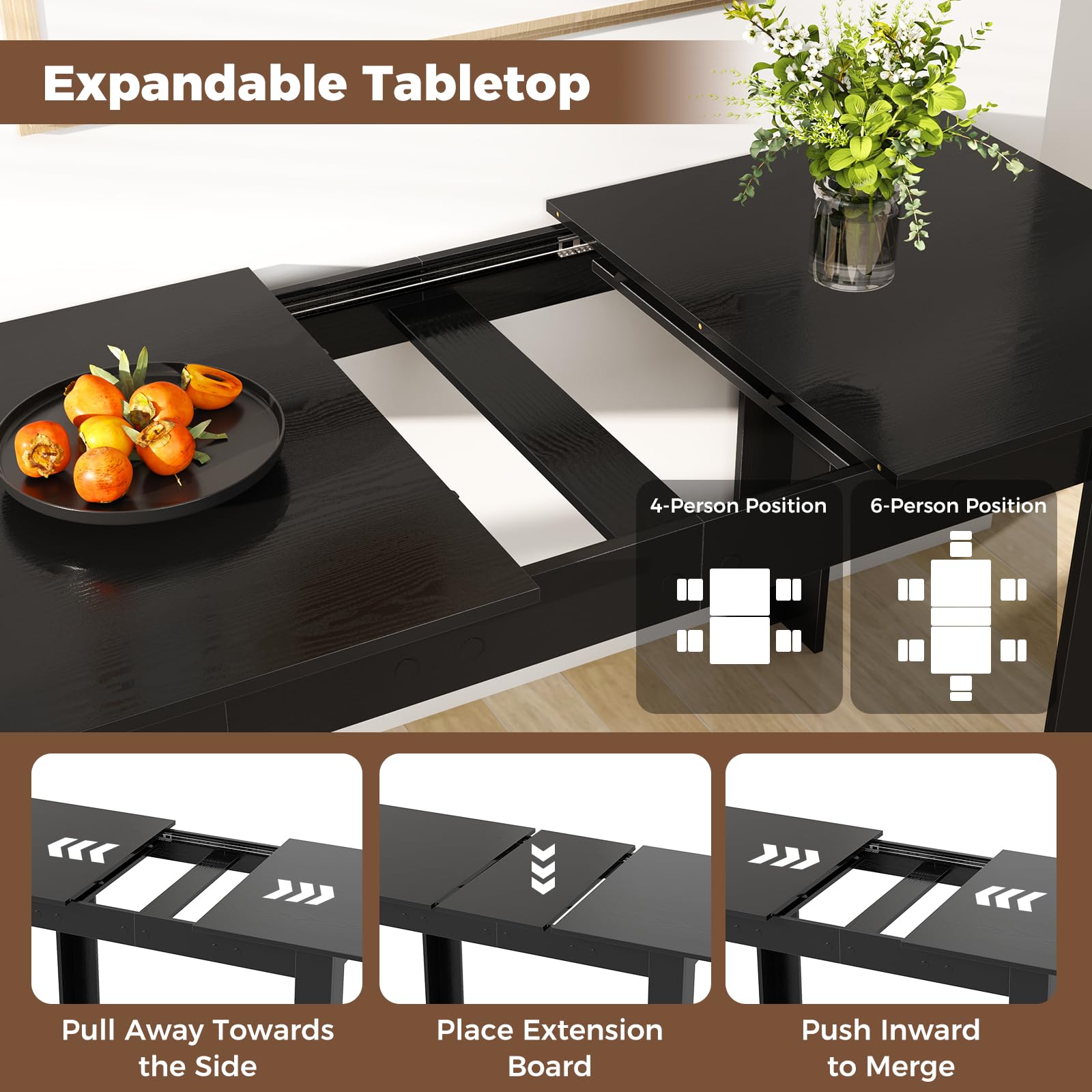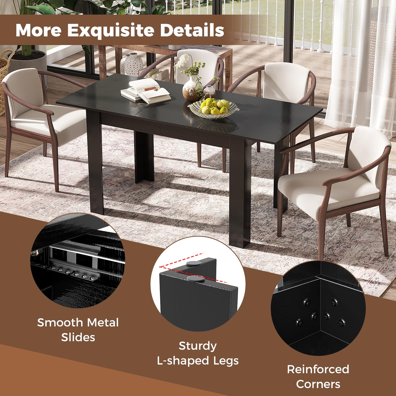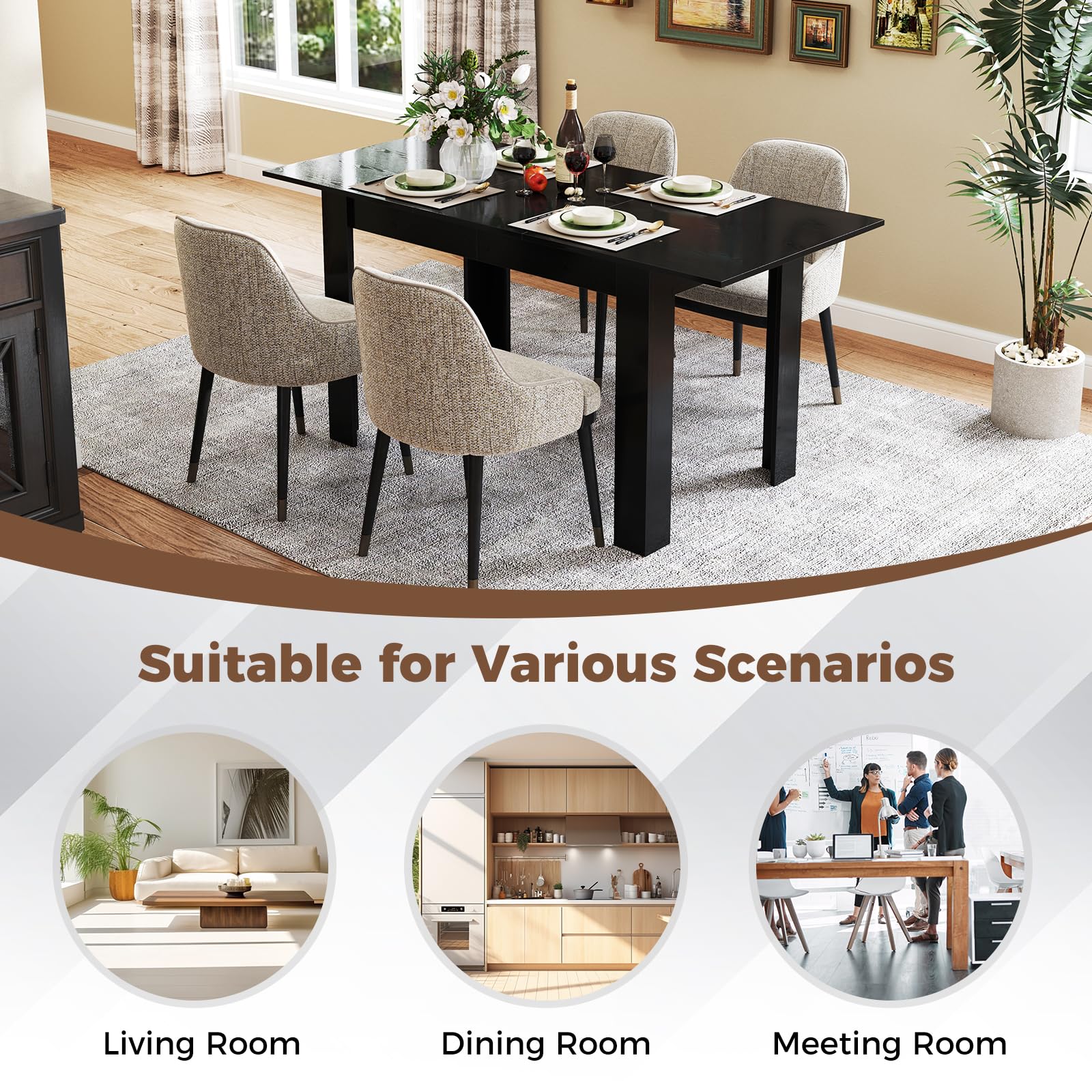 Suitable for Various Scenarios: Whether you're hosting a family dinner in the living room, a formal dinner in the dining room, or a business meeting in the conference room, this table fits right in. Its classic design and practical expandability make it a must-have for any home setting.