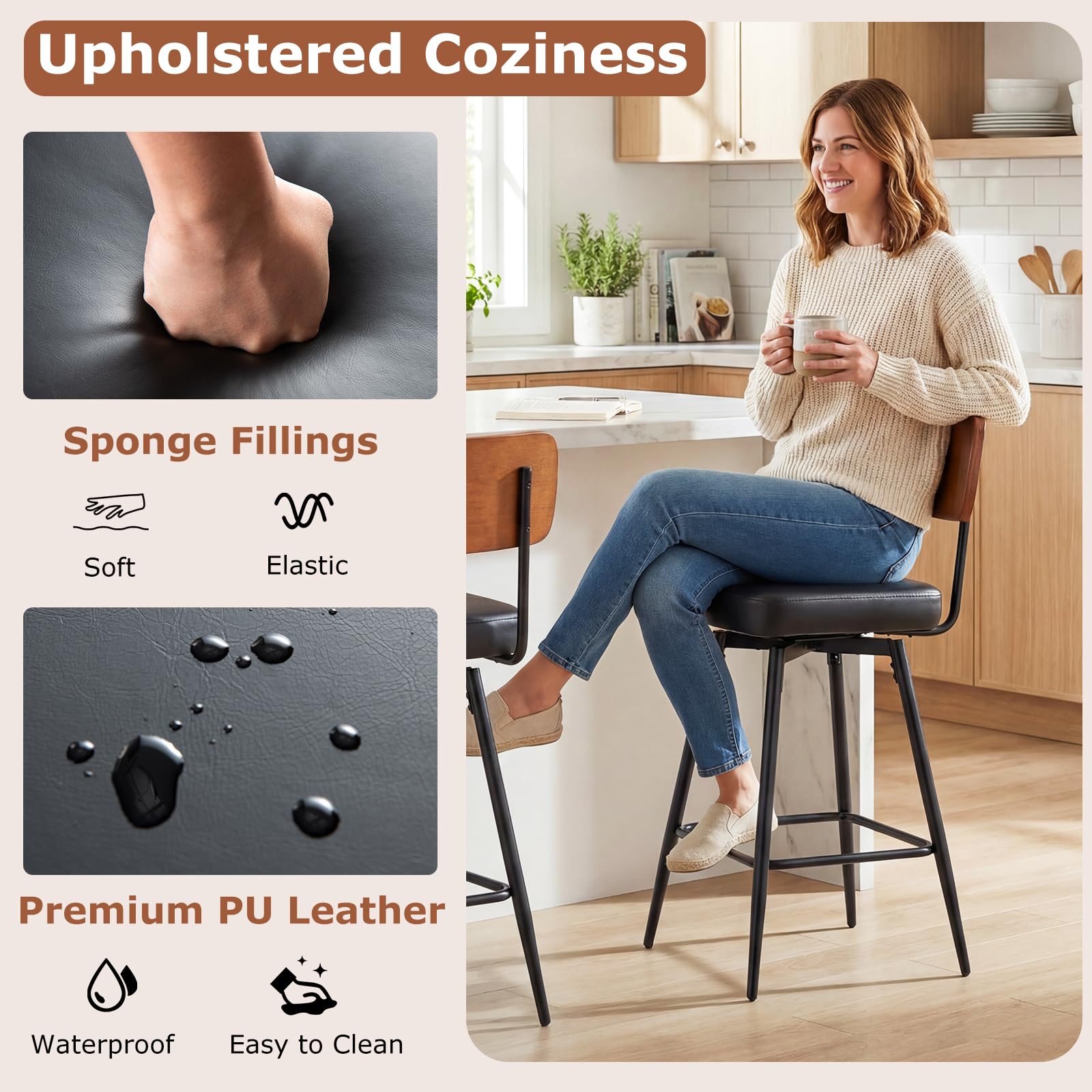 360° Swivel Convenience: These barstools feature smooth 360° swivel seats, allowing easy access and exit from any angle. It also enhances social interaction and makes them ideal for lively gatherings.