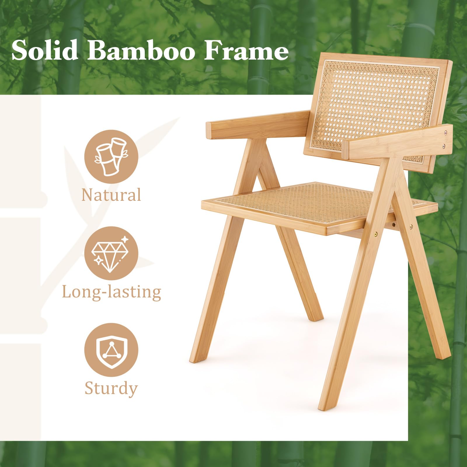 Rattan Dining Chair with Sturdy Bamboo Frame