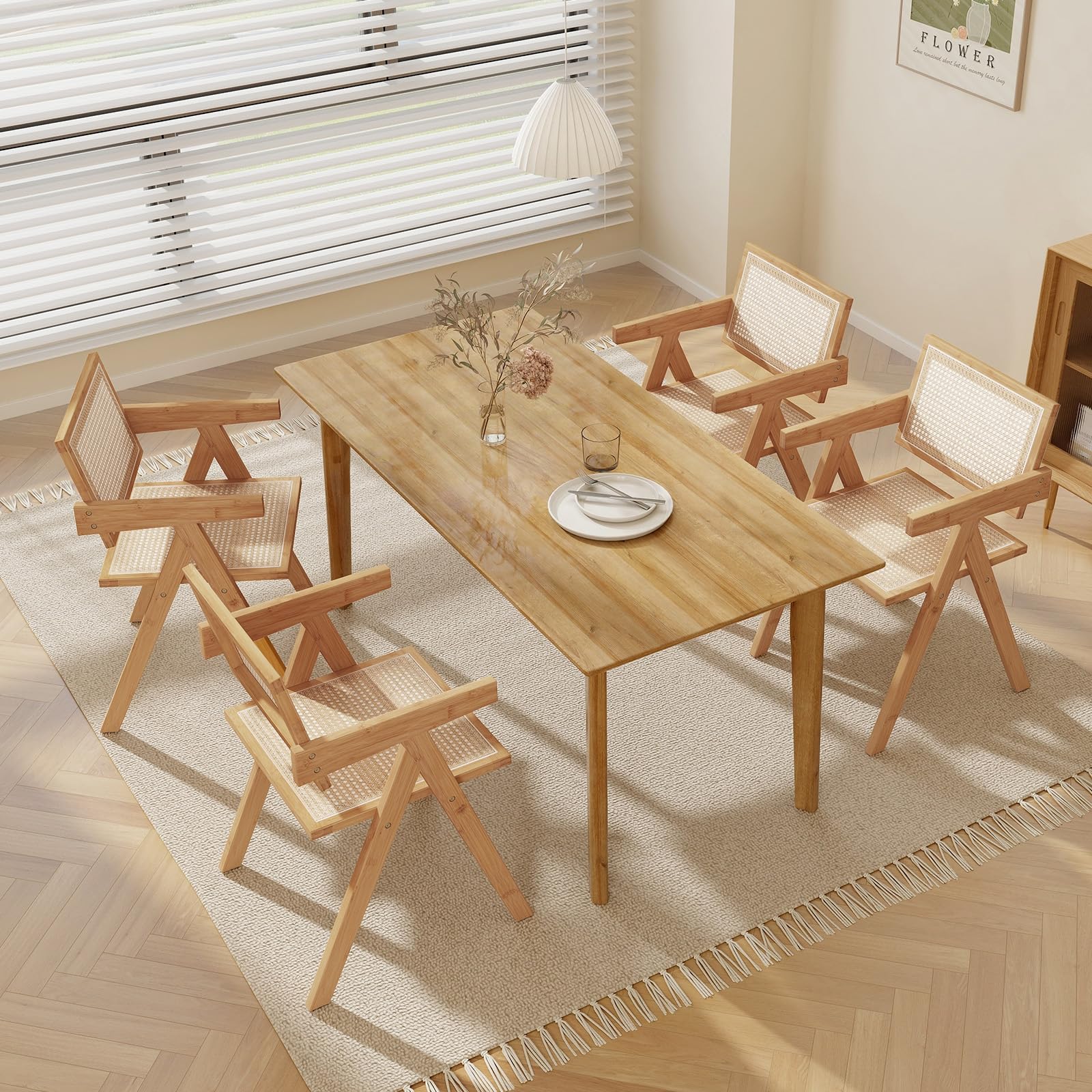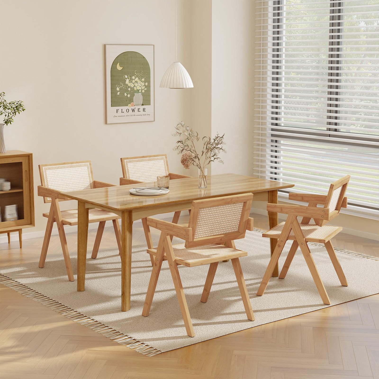 Natural and Sturdy Bamboo: The rattan dining chair is crafted with a solid bamboo frame, exuding exceptional durability and natural beauty. As a perfect addition to your dining time, this chair imparts a touch of elegance.