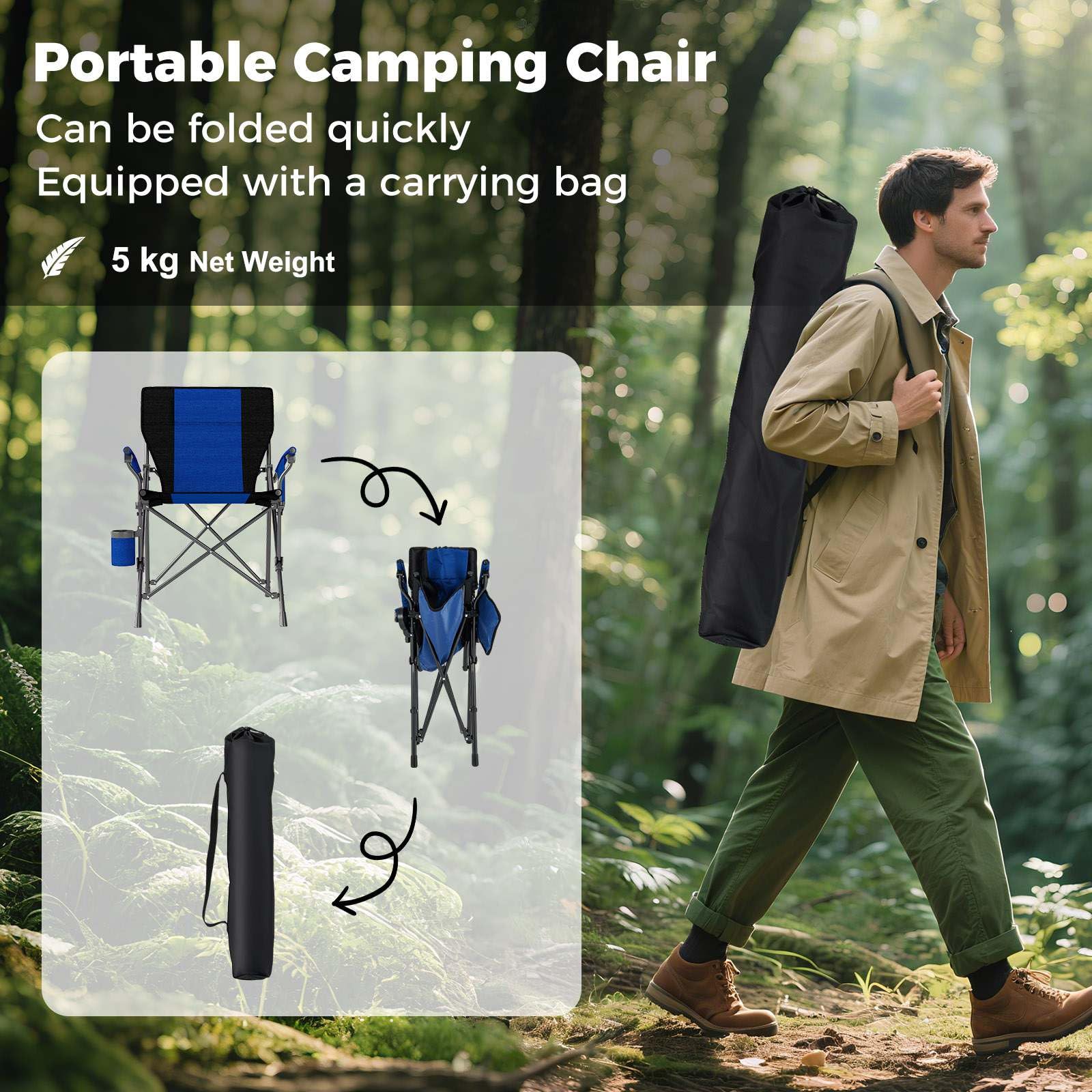 Portable Camping Chair: The camping chair with 5 kg net weight can be folded quickly into a compact size. Also, the folding chair is equipped with a carrying bag, making storage and transport especially convenient for travelers and campers.