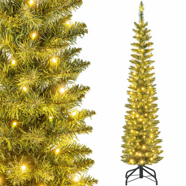 The Christmas tree is designed with 296/390/499/591/699 simulated branch tips to create a lush and realistic appearance. These branch tips are crafted from non-fading PVC material, ensuring a long-lasting and allergy-free display. Safety is a top priority, as the selected material is flame-retardant. To add the festival vibe at day and night, the tree is adorned with 150/180/200/300/400 warm white LED lights. Stability is ensured with a sturdy metal base, reducing the risk of tipping over. Additionally, the base is designed with anti-slip pads to prevent any scratches or damage to your floors. Thanks to pencil shape, the Xmas tree is ideal for small spaces, such as home, office, cafe, store.