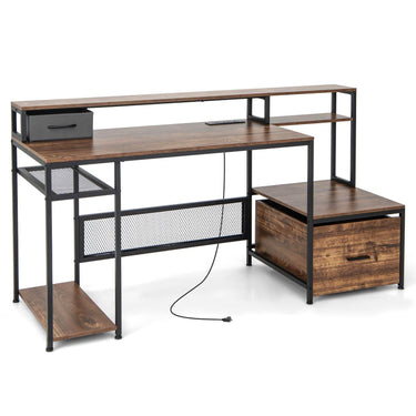 170 CM Computer Desk with Monitor Stand and File Drawer