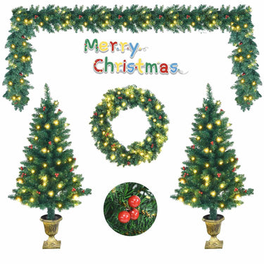 Pre-Lit Holiday Christmas 4-Piece Set with 200 LED Lights and Red Berries