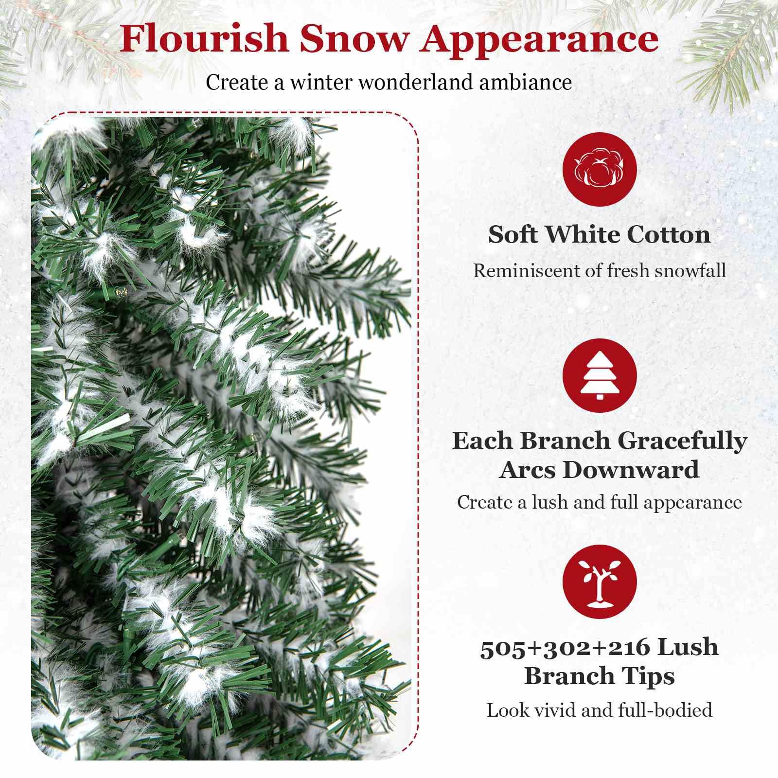 Mimicking the beauty of a snowfall with 216 + 302 + 505 naturally dropping branch tips, the pencil Christmas tree will bring the festival vibe to your home. The simulated cotton-like accumulated snow creates a stunning visual effect that will leave you in awe. With 100 + 120 + 180 LED lights that come adorned on this spectacular holiday decorative tree, your living space will be transformed into a warm wonderland. Additionally, the PVC branch tips are fire-proof and smell-free, ensuring safe use in indoors. Equipped with a round metal base, the faux Xmas tree offers superior stability. The artificial Christmas tree set of 3 with slim shape can be easily arranged in various settings, allowing you the freedom to decorate according to your imagination.