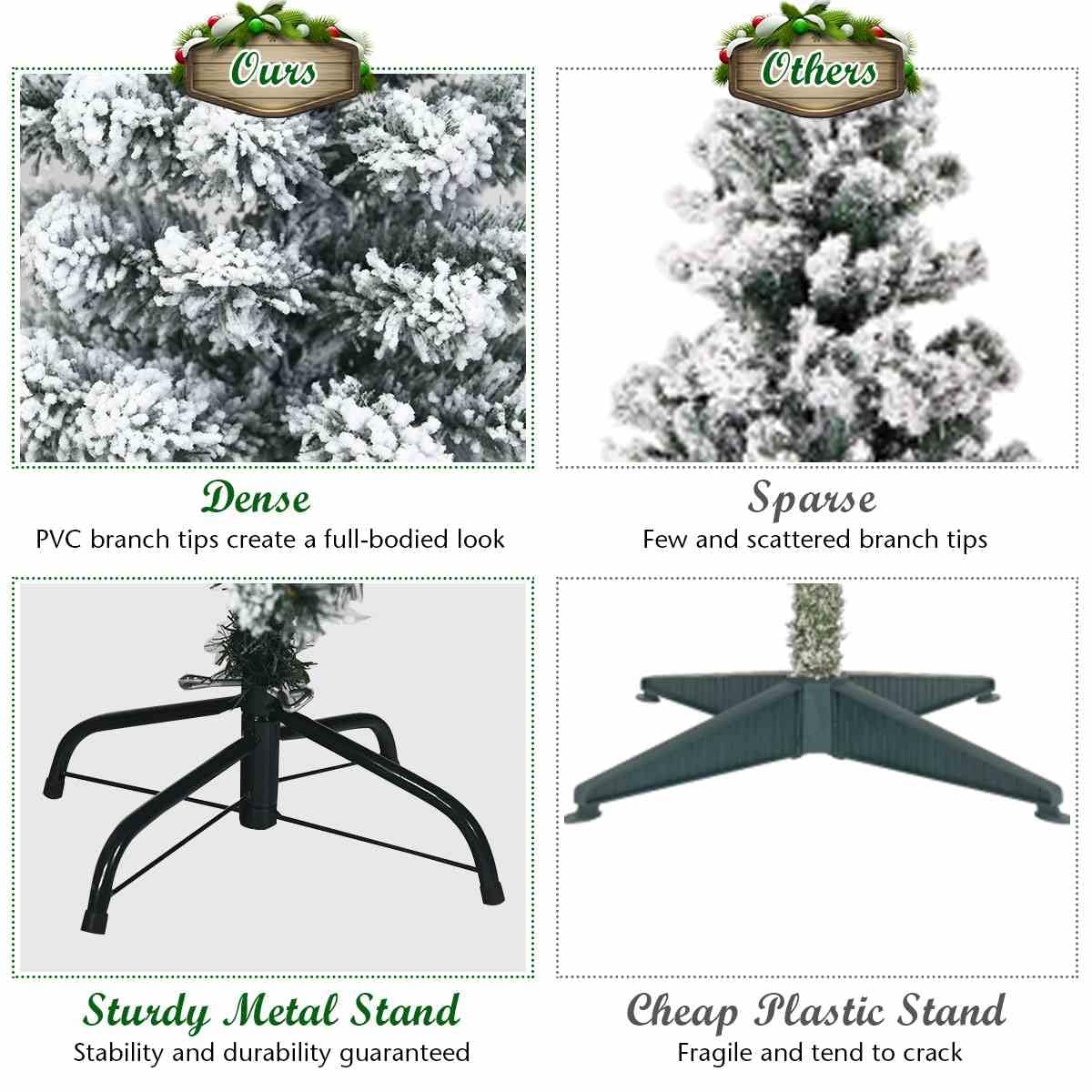 Flocked Design and Perfect Decoration: This 1.4/1.8/2.27m Christmas tree features a realistic appearance. The heavy snow flocked branches will take you into a wintry world and as an attractive decoration during holidays. It will surely make your home full of festival flavor so that you can enjoy a wonderful Christmas with your family!