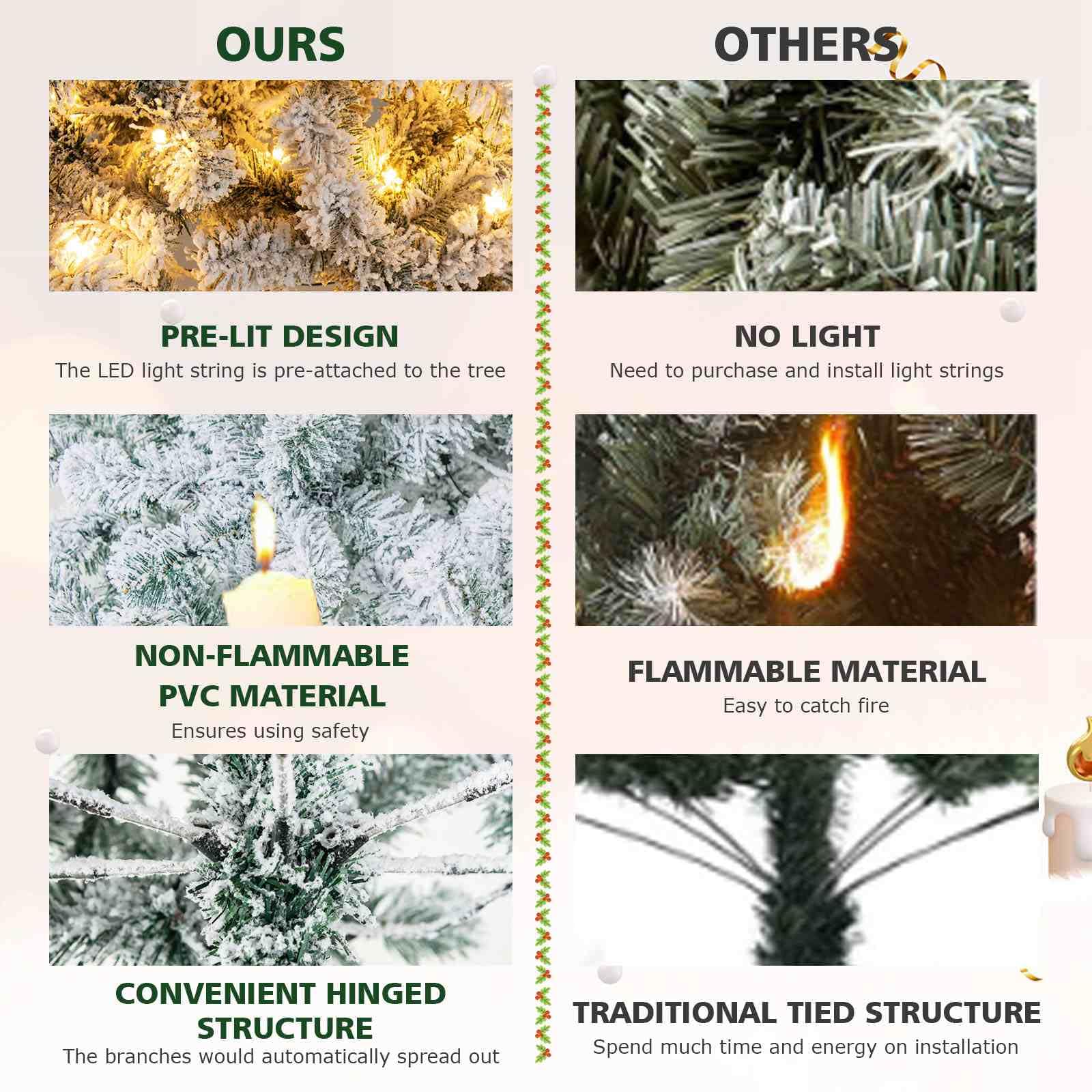 1.4M Snow Flocked Christmas Tree with 295 Tips and 150 LED Lights