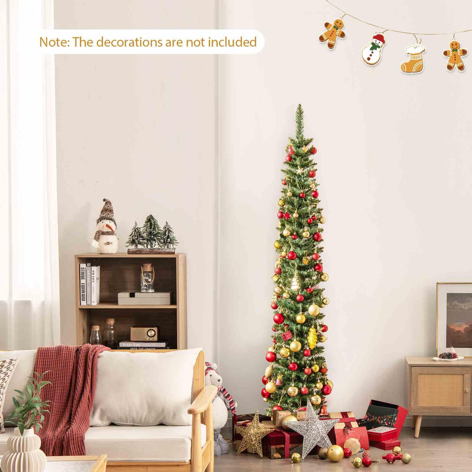 Space-saving Vivid Decor: Featuring a total of 699/296/390/499/591 verdant branch tips, the artificial Christmas tree presents a lush and realistic appearance. Additionally, with slim shape, the Xmas tree can perfectly fit into any limited area, bringing joy to every corner of your home.