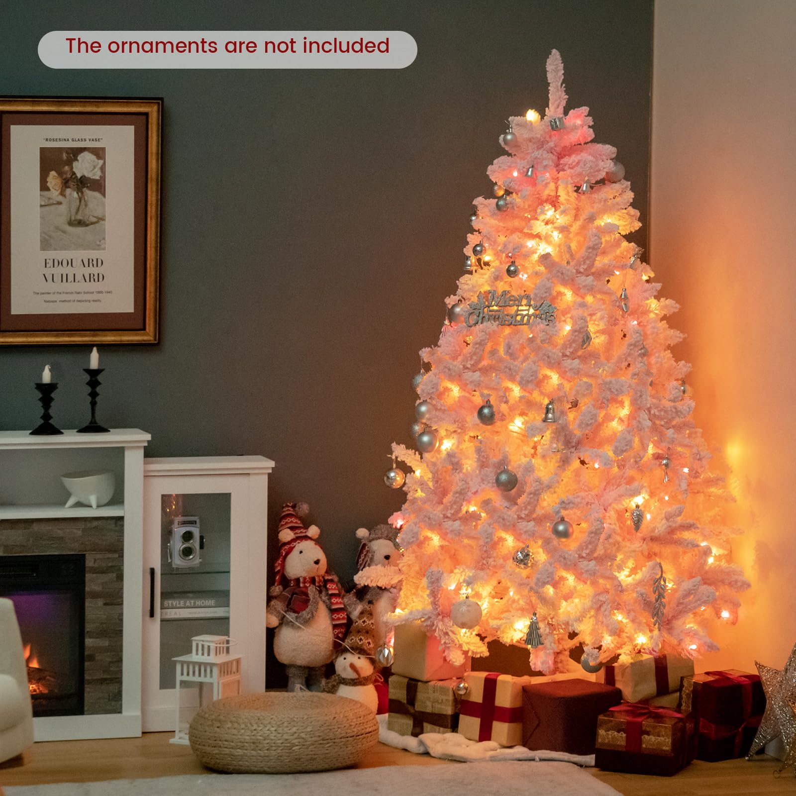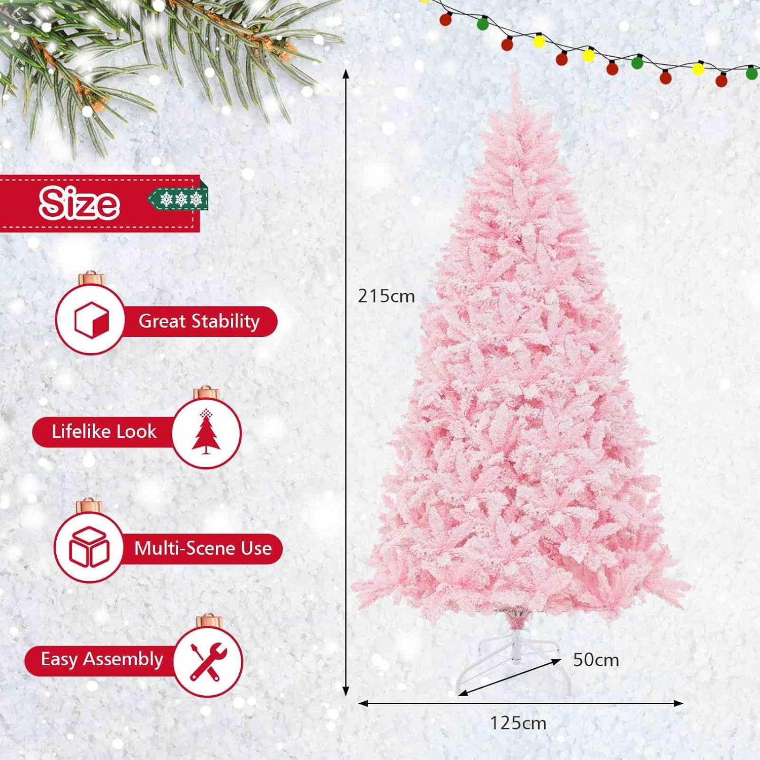 1.85m/2.15 m Pink Snow Flocked Christmas Tree Artificial w/ 8 LED Lighting Modes