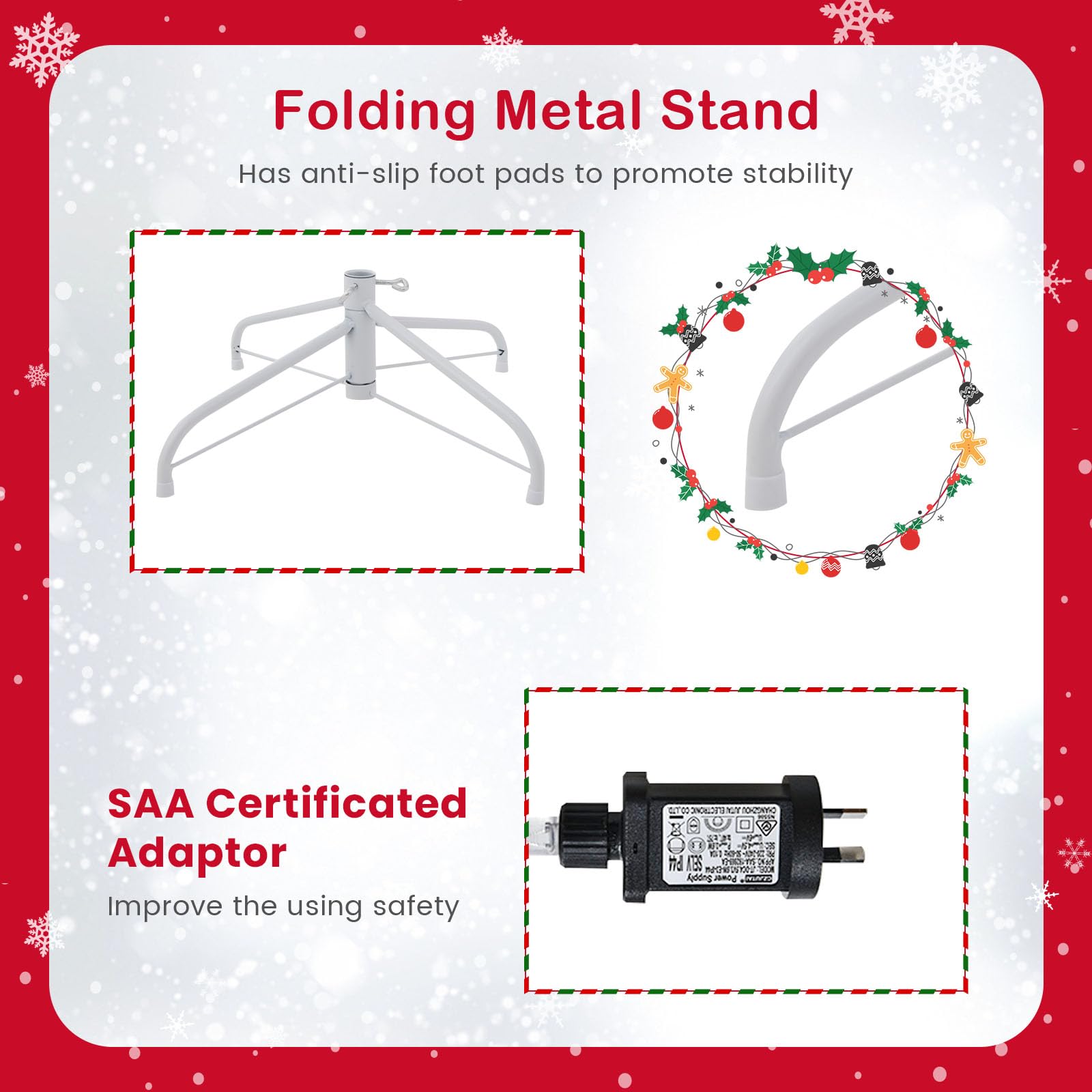 808/1200 lush branch tips to better mimic a lush real tree Crafted of premium PVC that is fireproof & non-allergic Adorable flocking to make the Xmas tree stand out 350/500 dazzling LED lights offer 8 lighting modes for your party Present colorful lighting (red + orange + blue + green), cold lighting & warm lighting Combination, in wave, sequential, slo glo, chasing/flash, slow fade, twinkle/flash, steady on Hinged design allows branch tips to expand automatically Folding metal stand with anti-slip foot pads to offer strong support Consists of 3 sections for quick setup & compact storage Attracts people in the office, home, shop, mall, school and more Comes with the SAA certificated adaptor for safe using Candy Christmas tree with clear & brilliant lights, as delightful as candy!Ornaments are not included