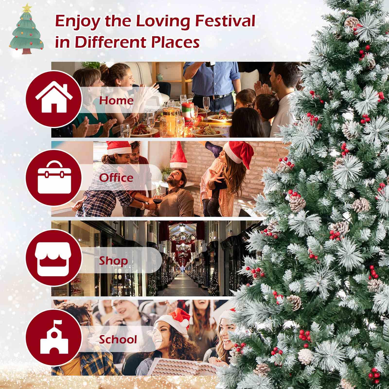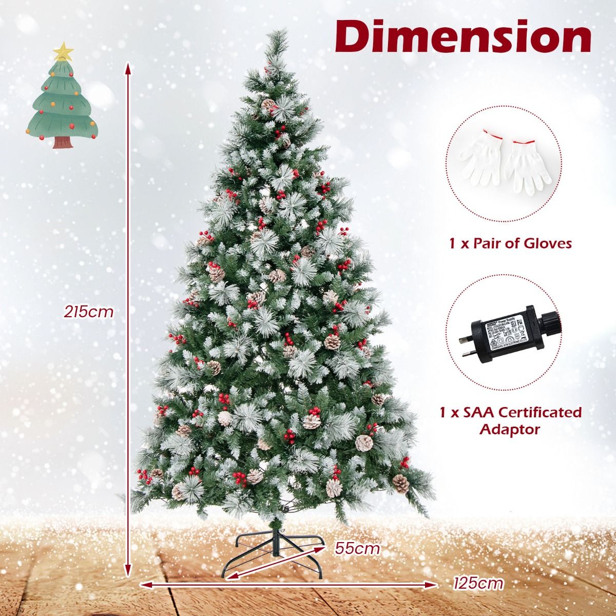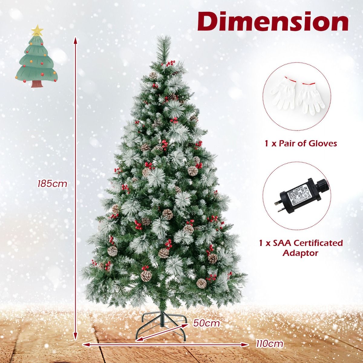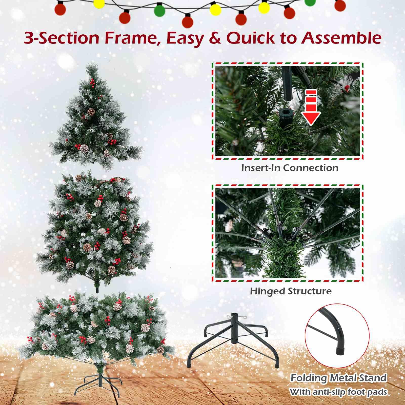 Pine Cones & Red Berries: Just like real trees, the Xmas tree contains 55/70 snowy pine cones that are totally natural, as gifts from the nature. Besides, 55/70 clusters of red berries are also included to create an exquisite appearance.