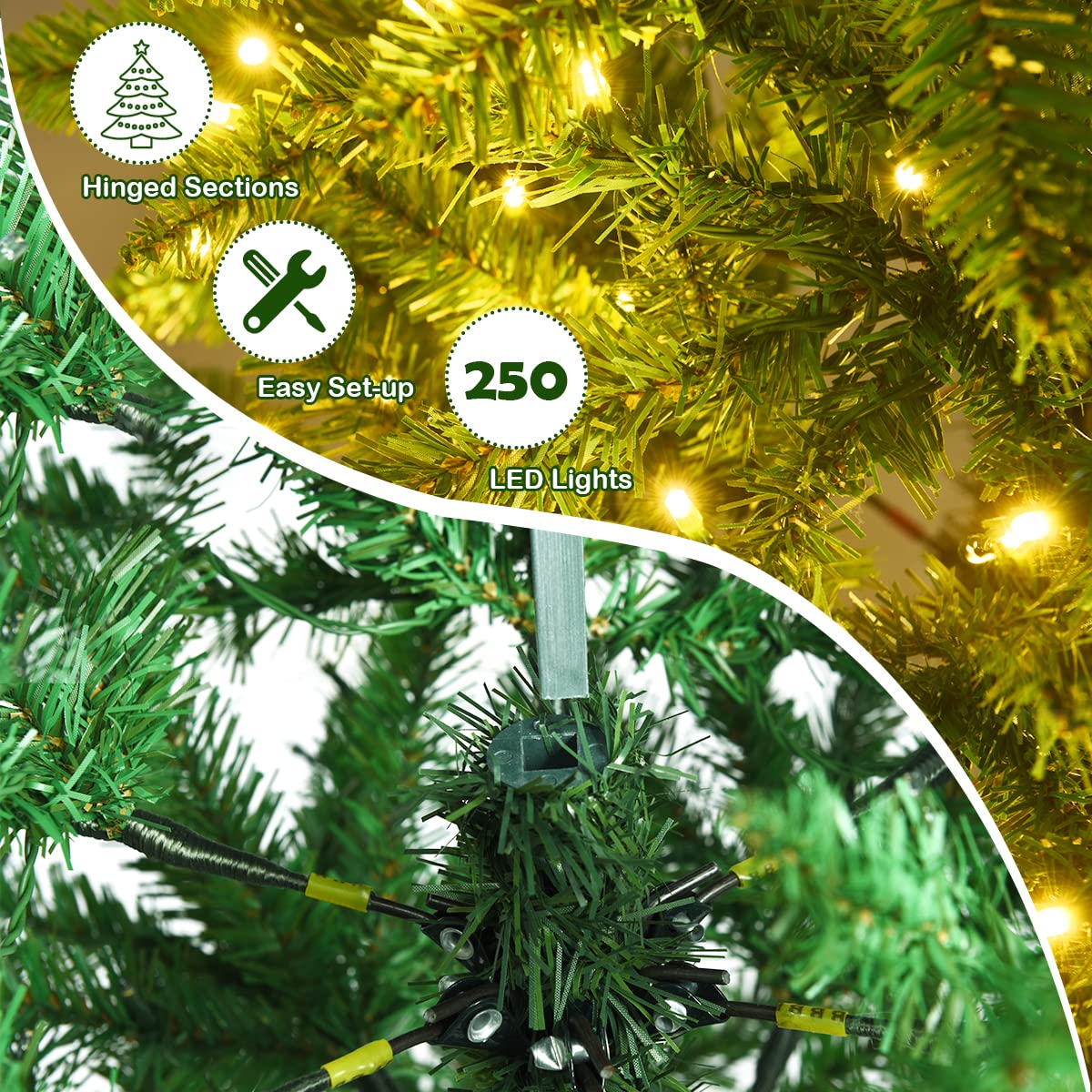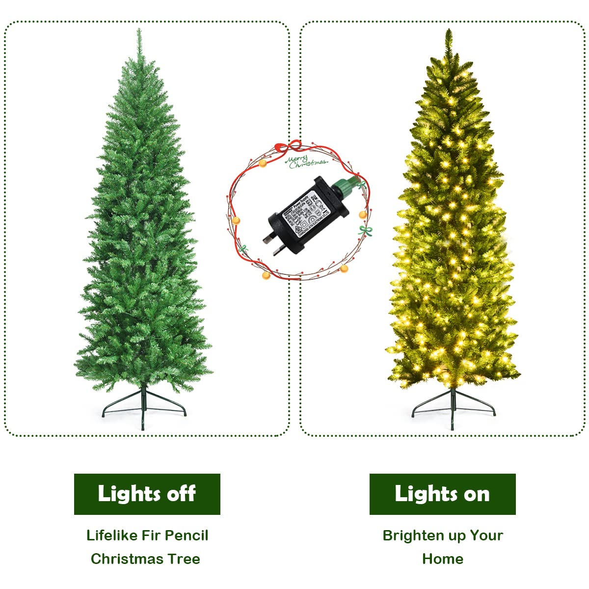 1.8m/6ft Pre-lit Pencil Christmas Tree,Artificial Hinged Fir Christmas Tree