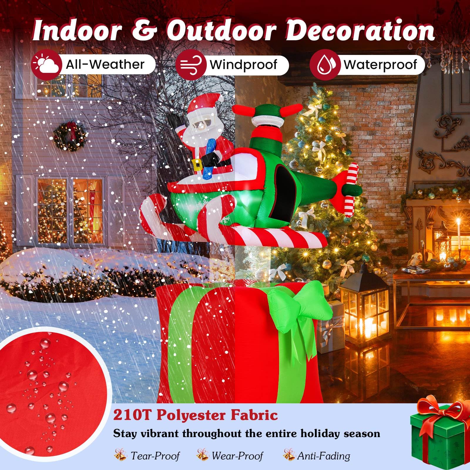 1.8m Christmas Inflatables Santa Claus with Helicopter on Gift Box