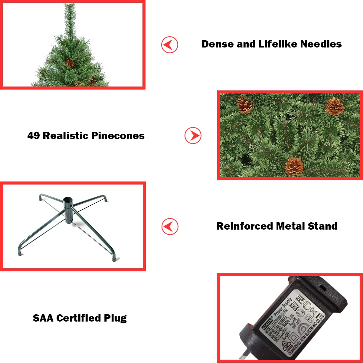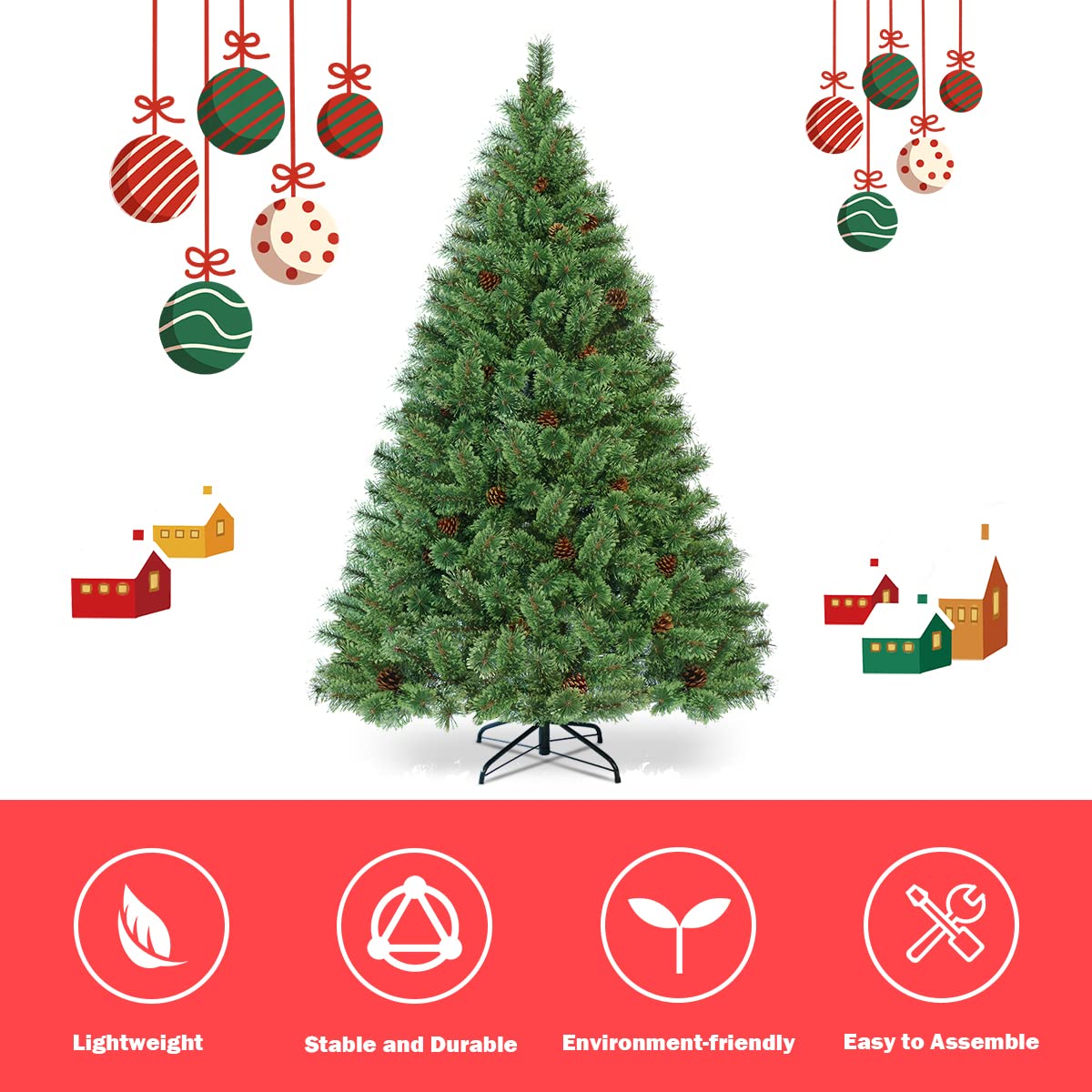 Natural Lifelike Charm: These artificial branch tips closely mimic nature's design for a life-like appearance, and look super realistic. With 484 individually crafted branch tips and decorated with 49 pine cones, this Christmas tree looks pretty full and fluffy and looks as charming as a real tree from a distance. This tree would be really cute decorated for holidays.