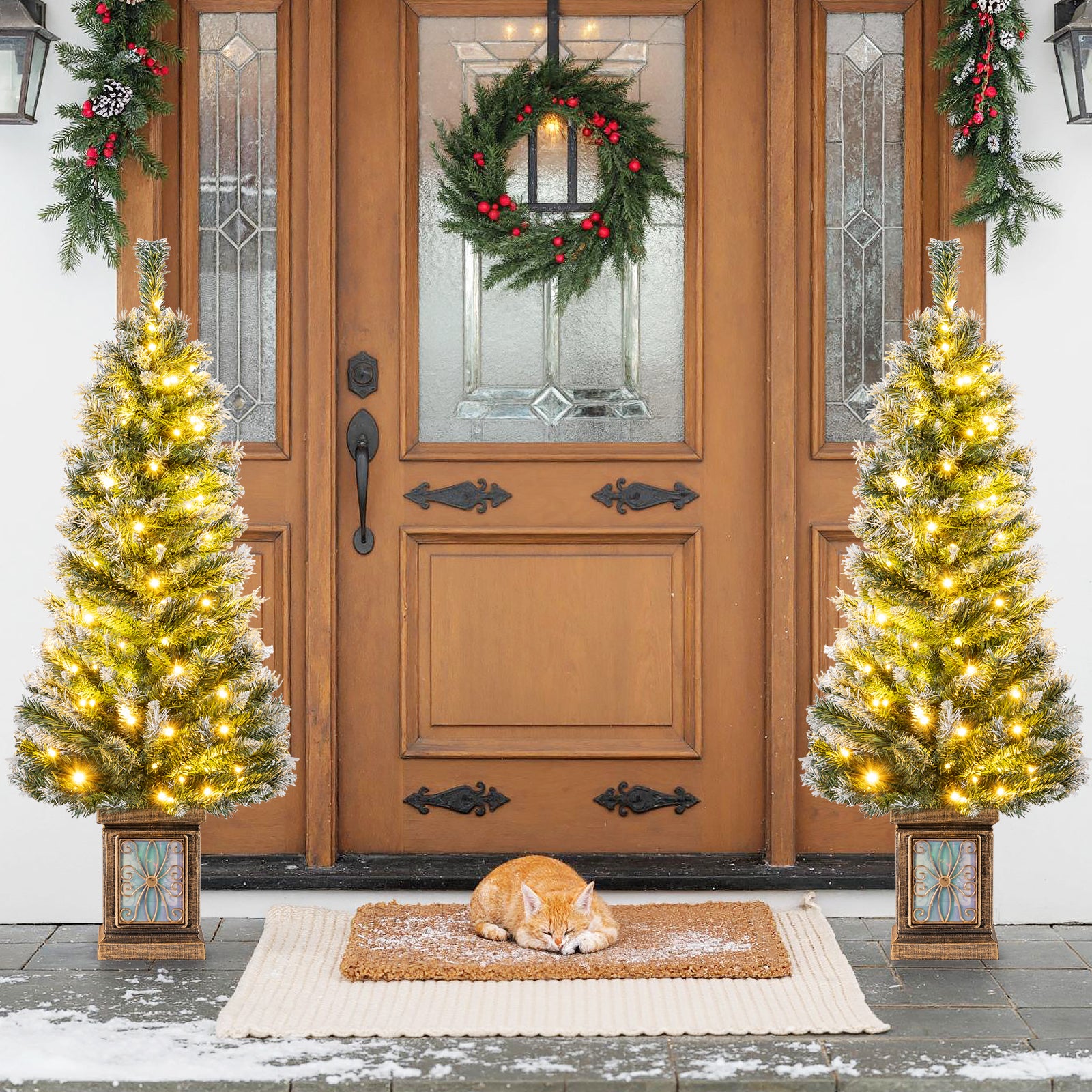 120cm Pre-lit Artificial Christmas Trees, Potted Xmas Tree w/ 80 Dimmable Warm White & Multi-colored LED Lights