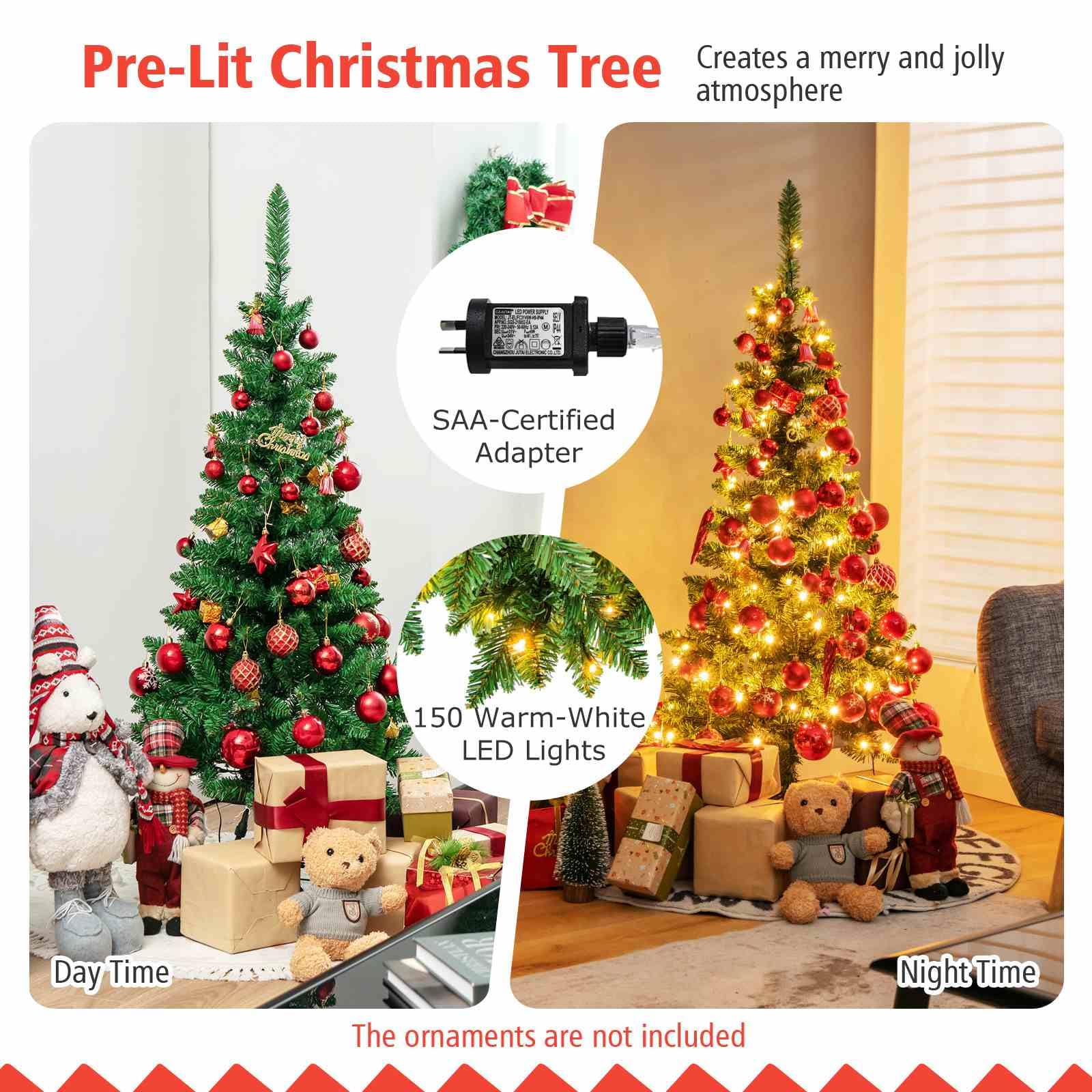 135/198/230cm Artificial Pencil Tree with PVC Branch Tips and LED Lights