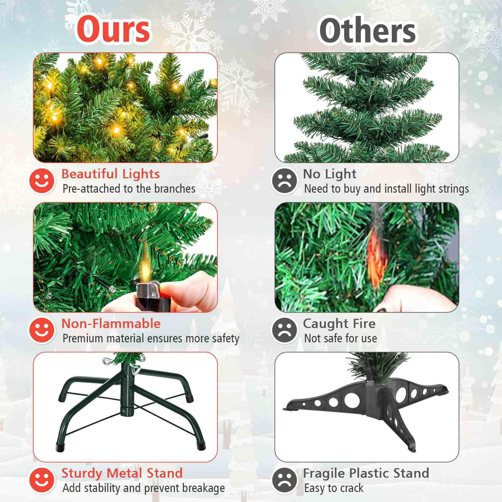 Life-Like Appearance and New PVC: Despite it's a cold winter, you can still get an artificial Christmas tree to vividly imitate a luxuriant living tree. Overall, it comes with 226/708/1085 lush branch tips which are all made of brand new PVC. Thus, the holiday decoration tree is fireproof and very durable, allowing for a safe long-term use.