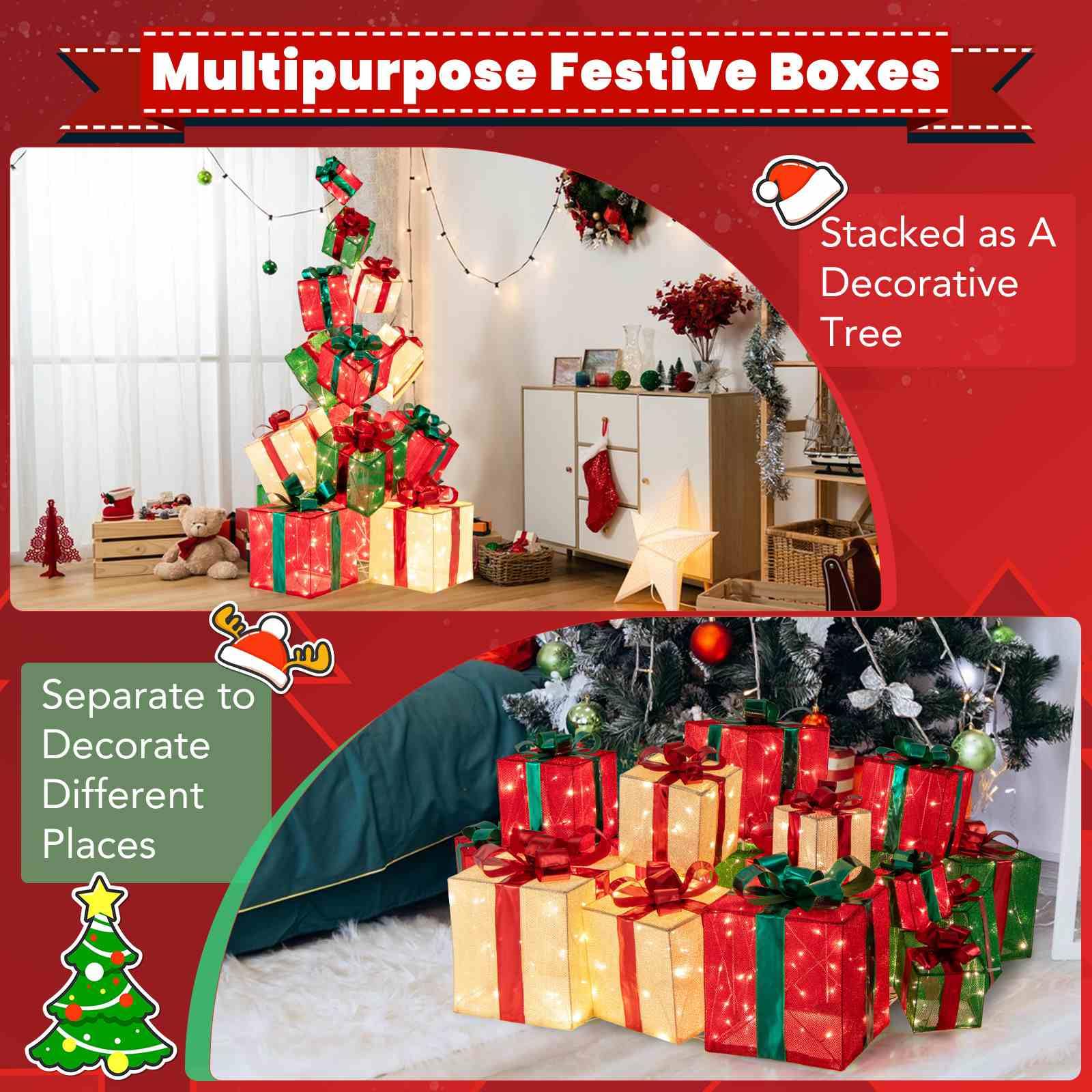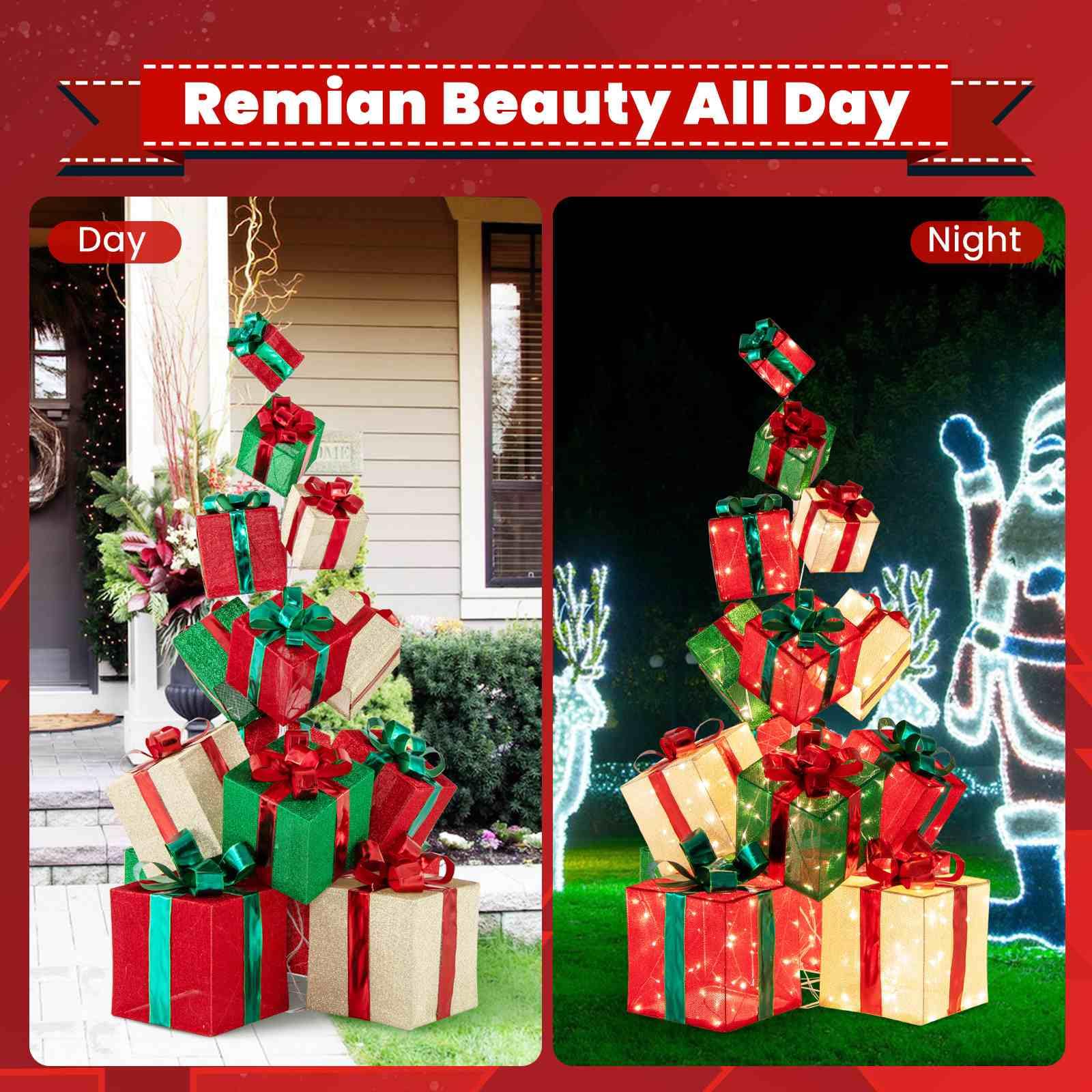 Eye-Catching Christmas Decration: Adorned with elegant ribbon bows, each box will decorate your home or yard beautifully. The colorful gift boxes will add a magical and festive flair, charming guests and enhancing the holiday spirit.