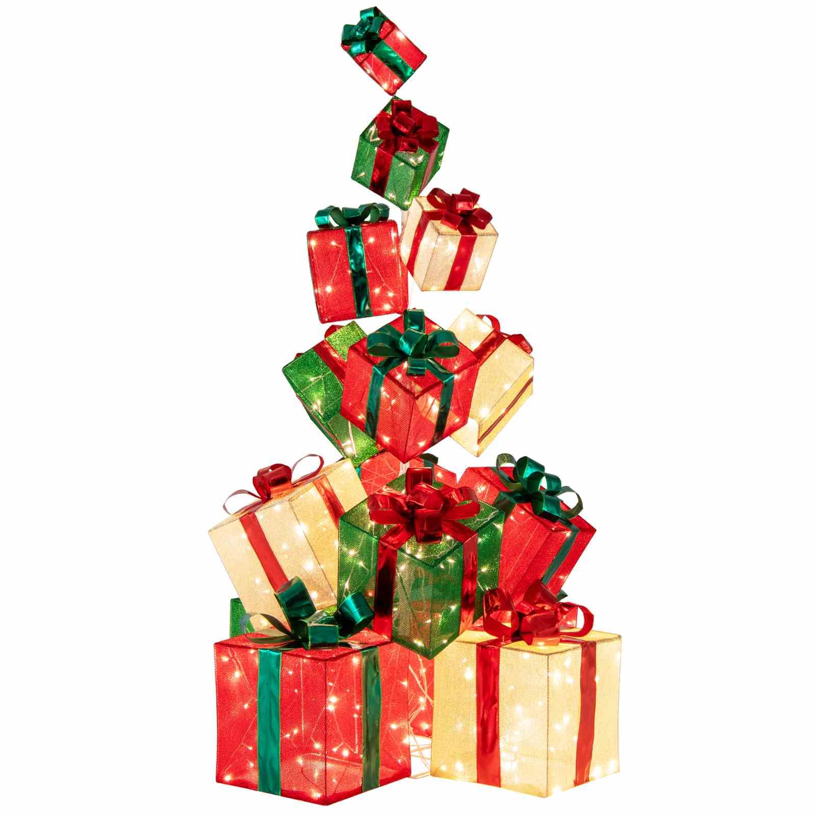 15 Pieces Staked Lighted Christmas Boxes with 450 Light Bulbs