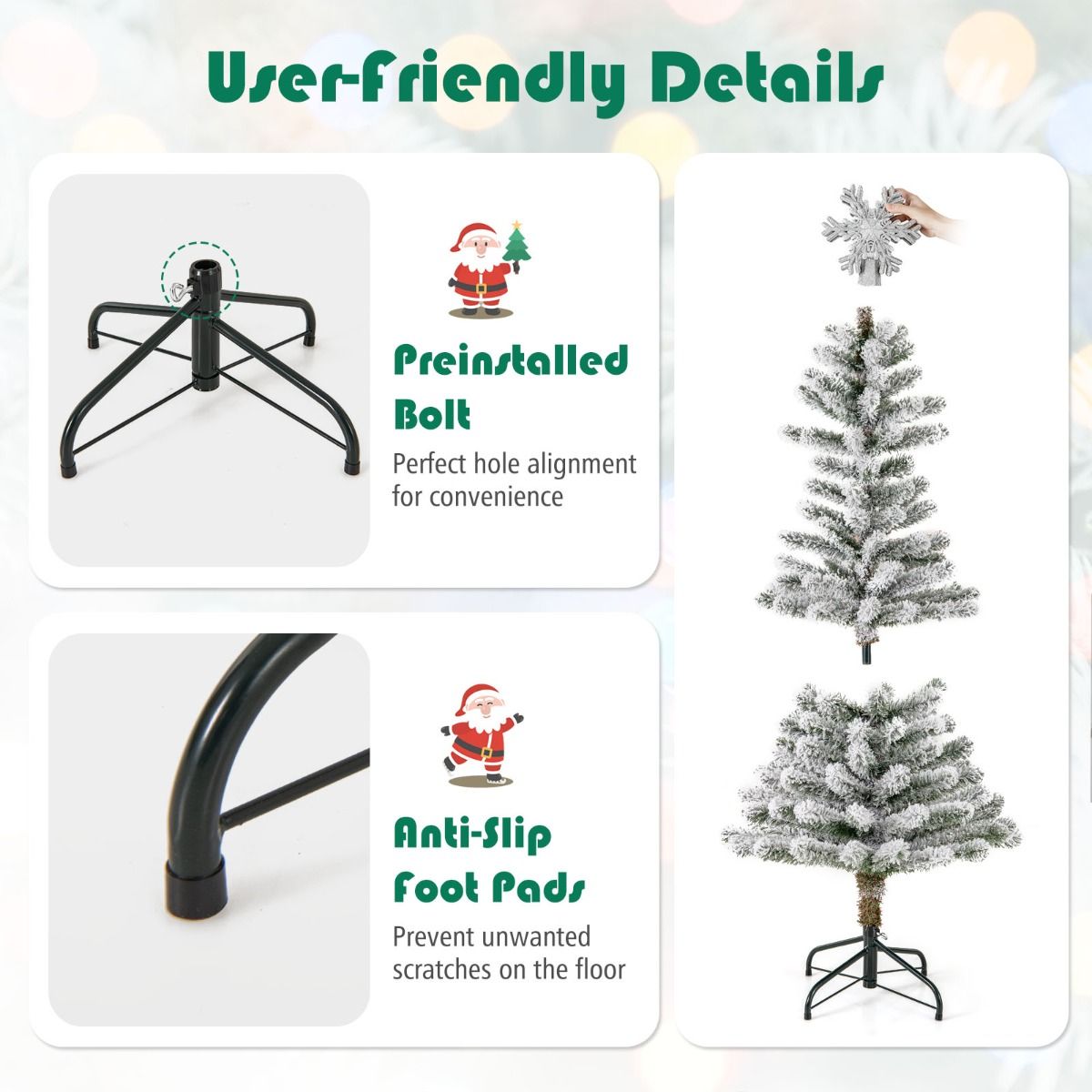Convenient Setup: The robust, folding metal stand comes with a preinstalled bolt, ensuring perfect hole alignment, while the 2/3-section design and hinged connection further simplify the setup of Xmas tree. Gloves are included to protect your hands.