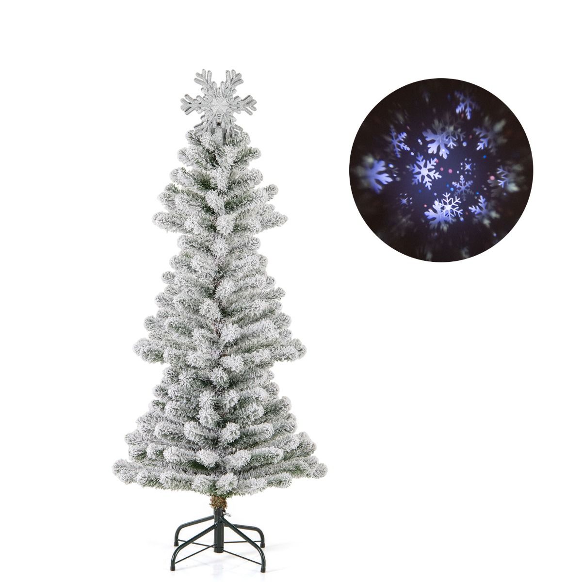 150/180 cm Artificial Xmas Tree with Snowflake Topper and Projection Light
