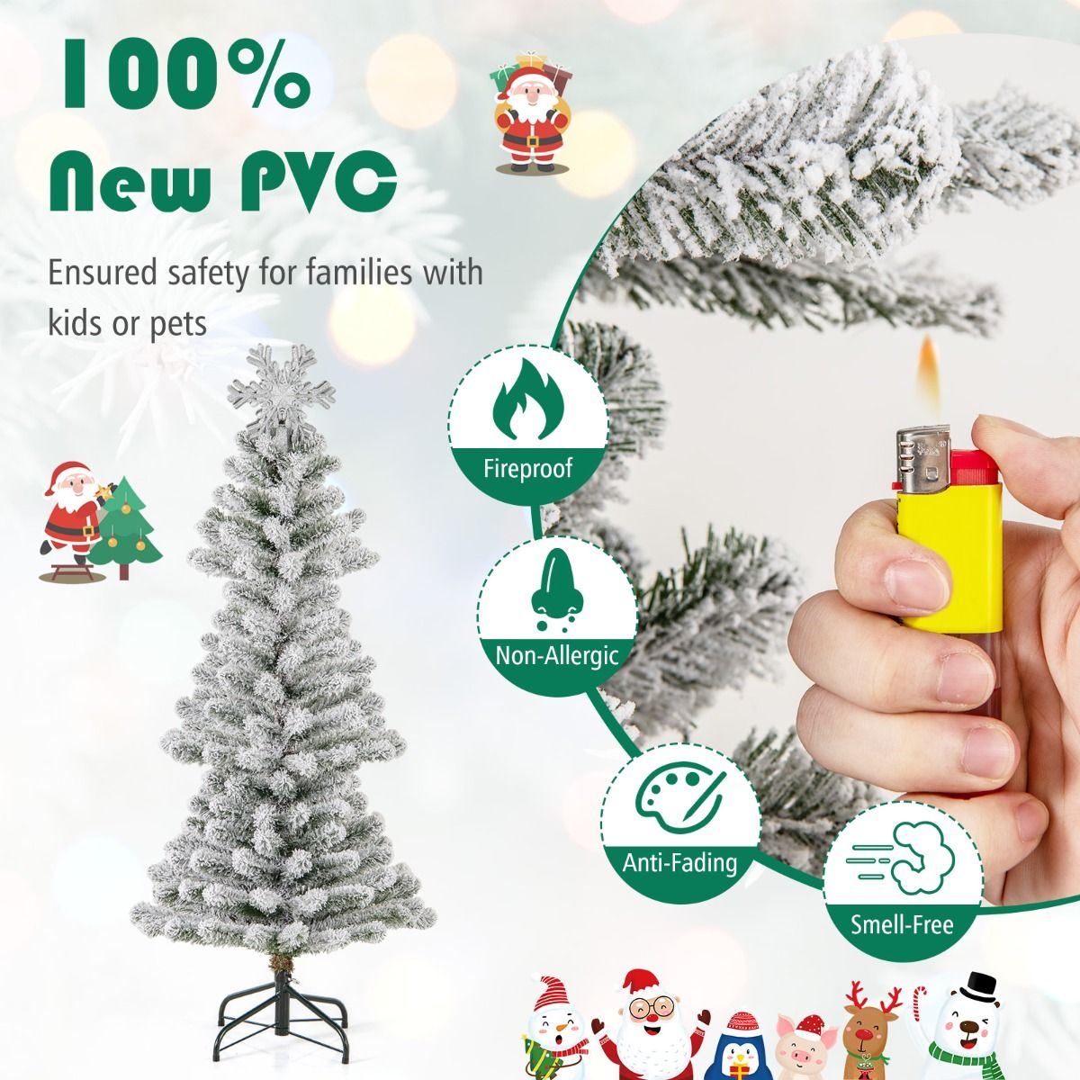 Premium Material: Crafted from 100% new PVC, the artificial Xmas tree is designed with your safety in mind. It is anti-fading, fireproof, non-allergic, and free of weird smells, ensuring durability and safety throughout the holiday season.