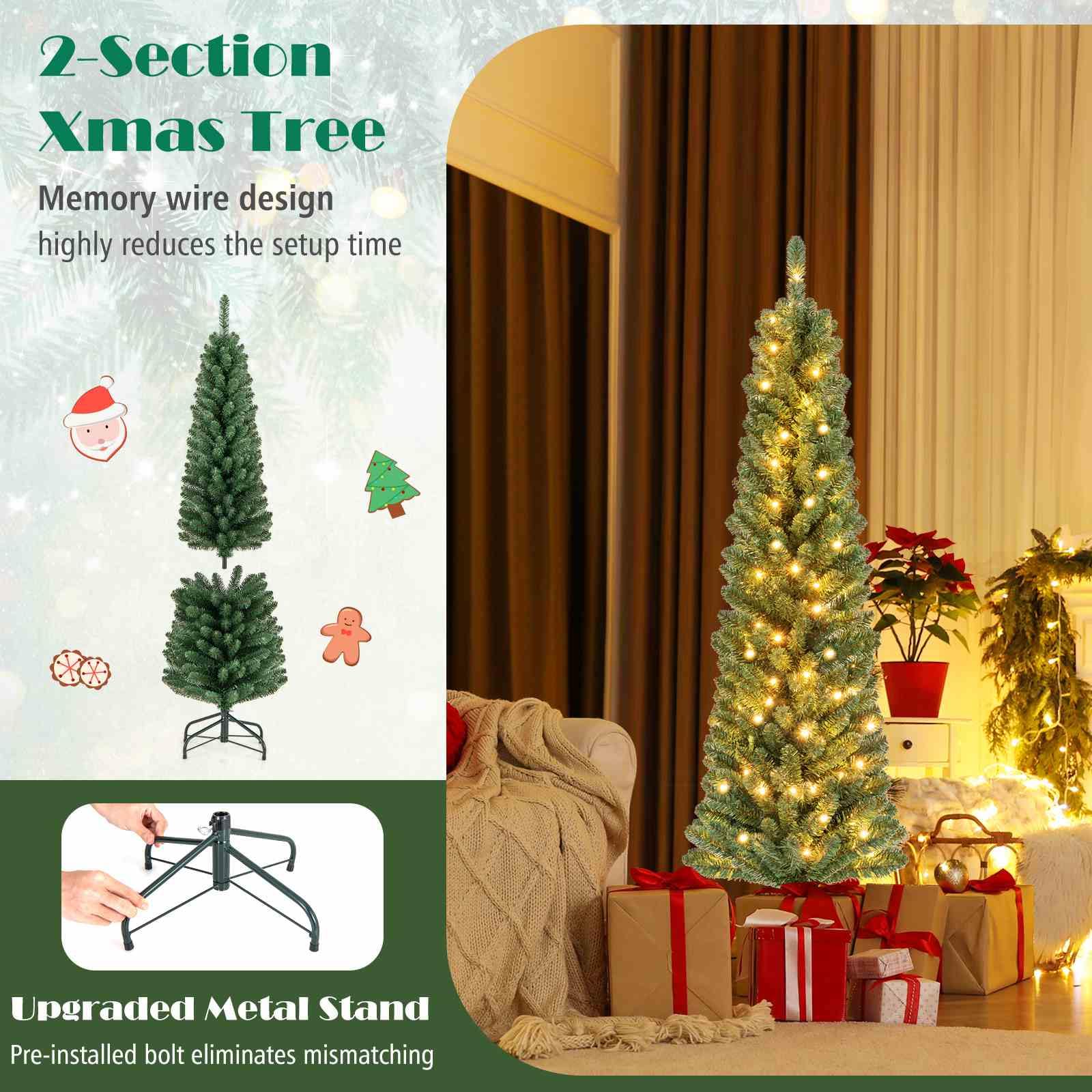 150 cm/180 cm/210 cm/240 cm Pencil Christmas Tree with LED Lights and Memory Branchs