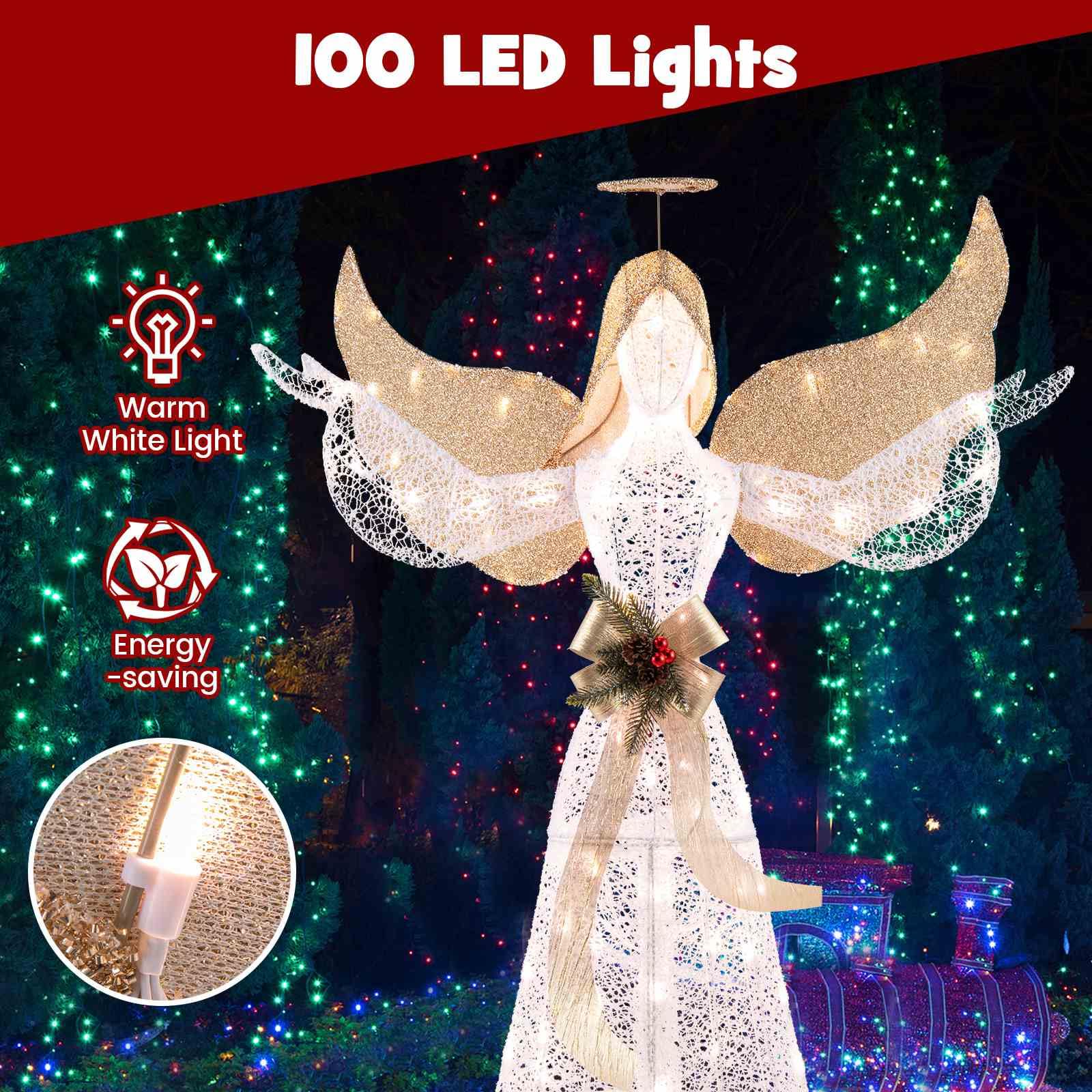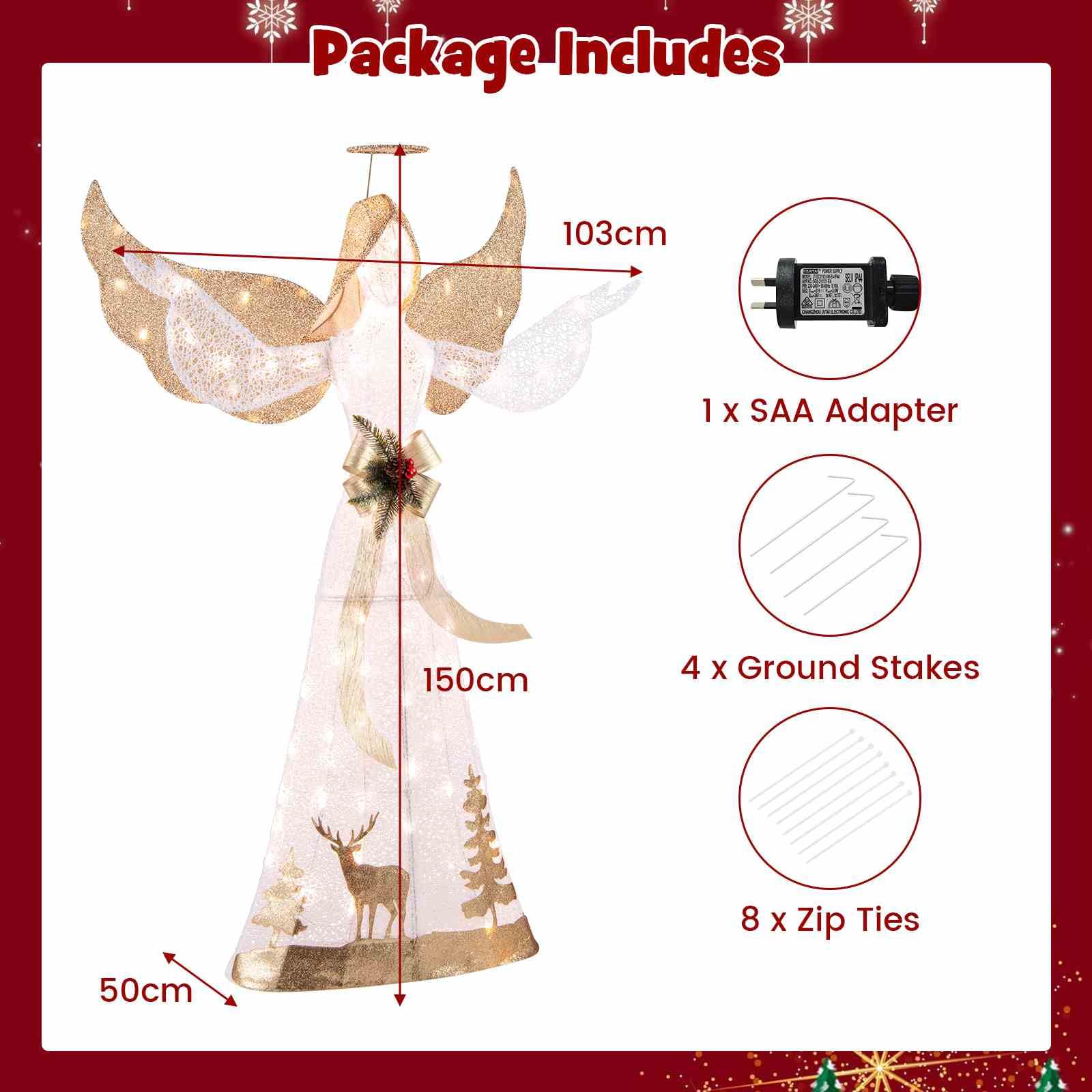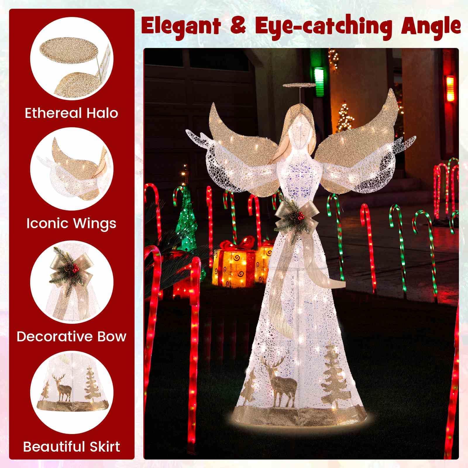 Enhanced Stability: Secure this holiday decoration firmly with the included ground stakes and zip ties. No matter the weather, you can trust that this pre-lit angel decoration will stand tall and stable for reliable addition.