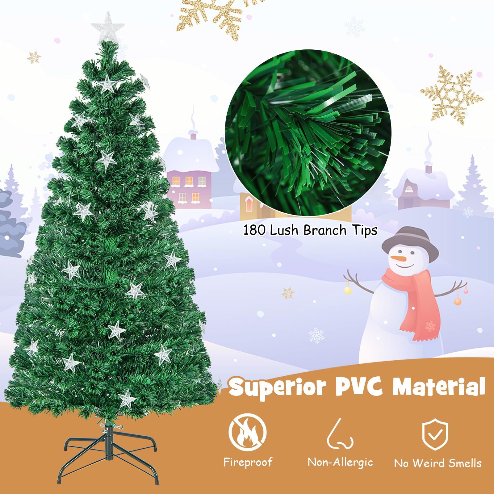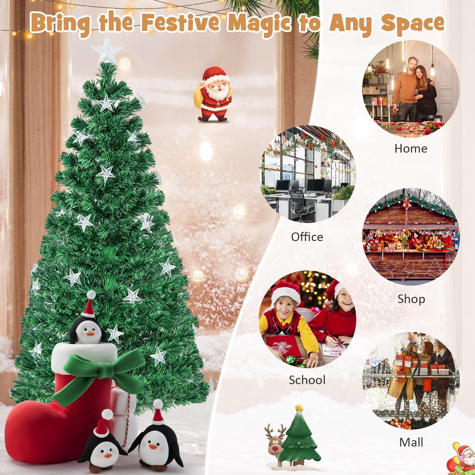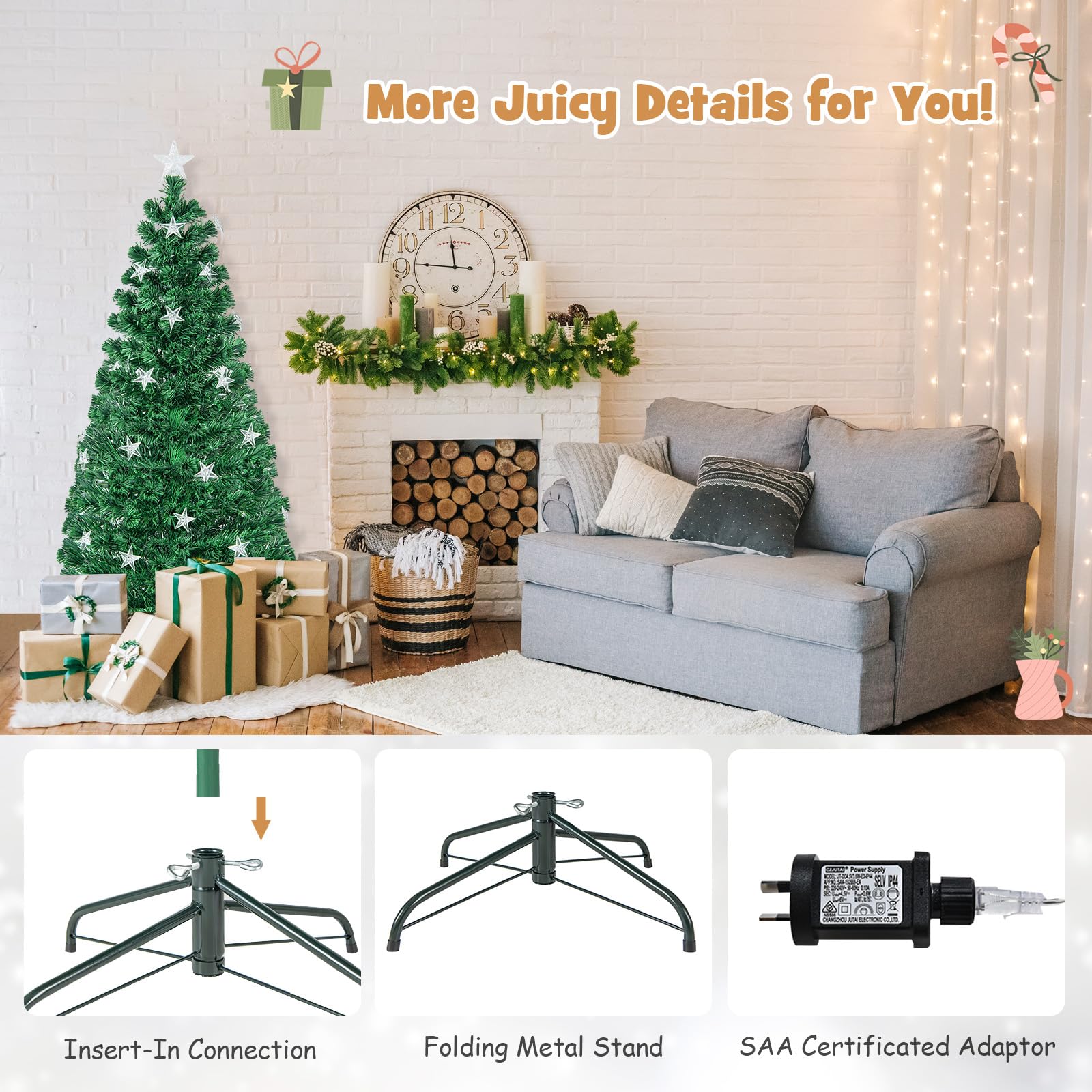 8 Lighting Modes: For a more special Xmas vibe, the artificial tree features 8 lighting modes, like waves flash, breathing flash, auto, etc. Besides, it contains attractive fibre optics to capture your attention at first sight.