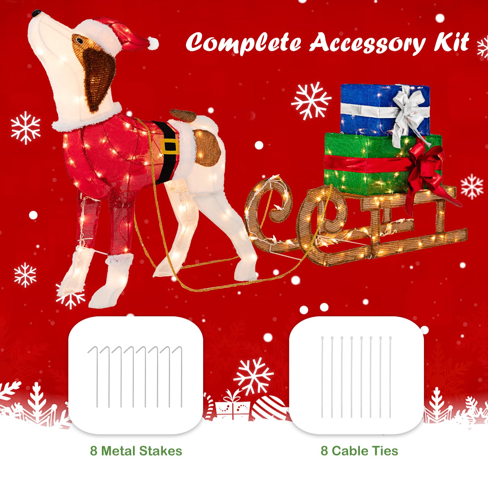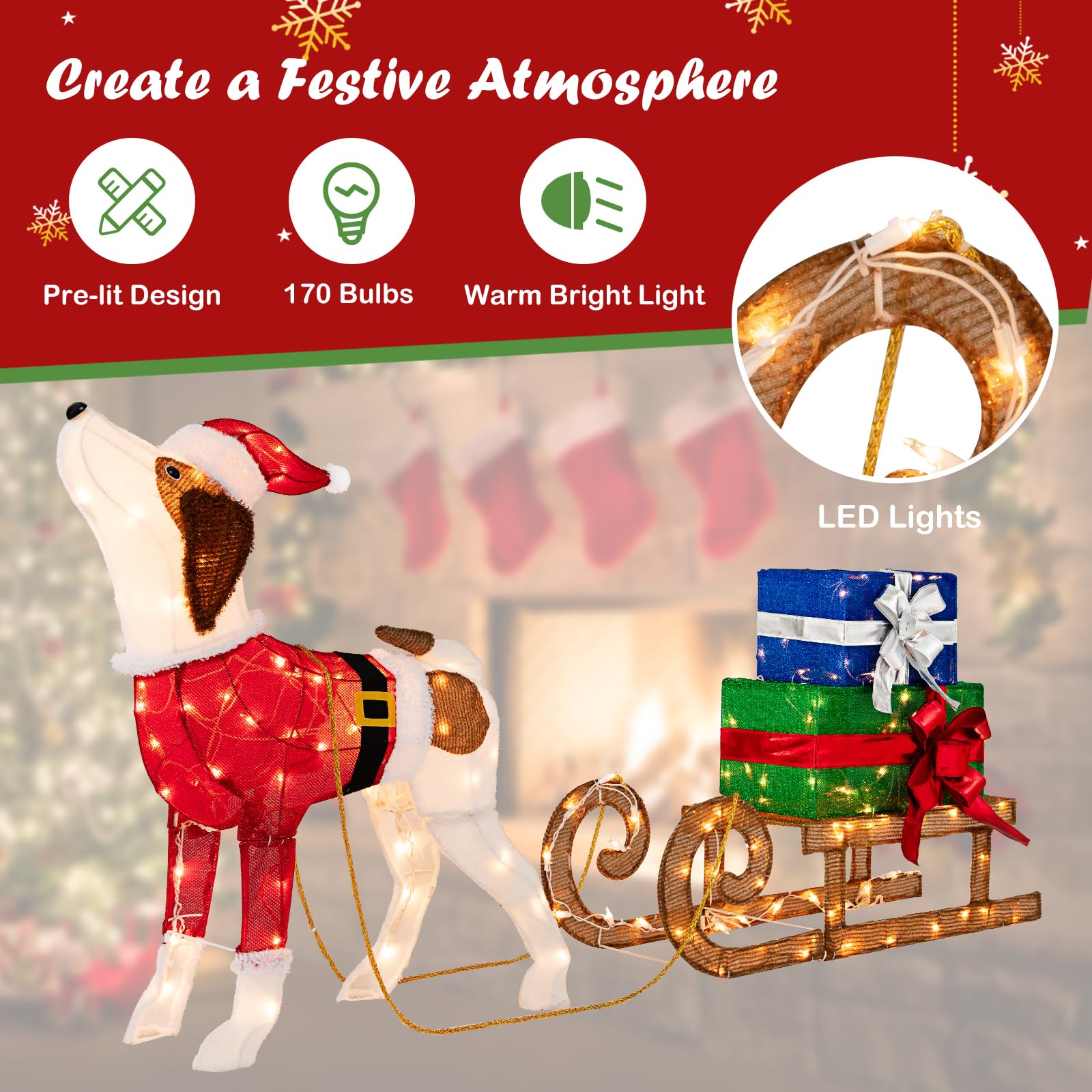 170 Warm Bright Lights Outdoor Pre-lit Xmas Dog and Sleigh and Gift Boxes Combo