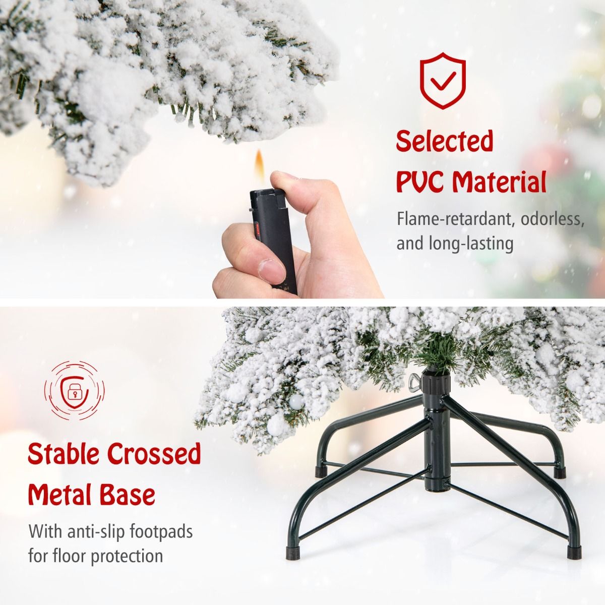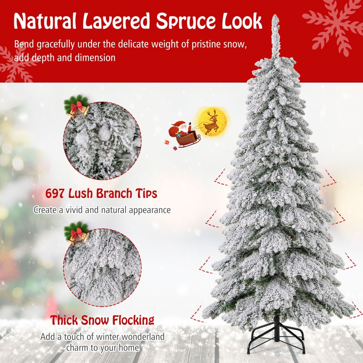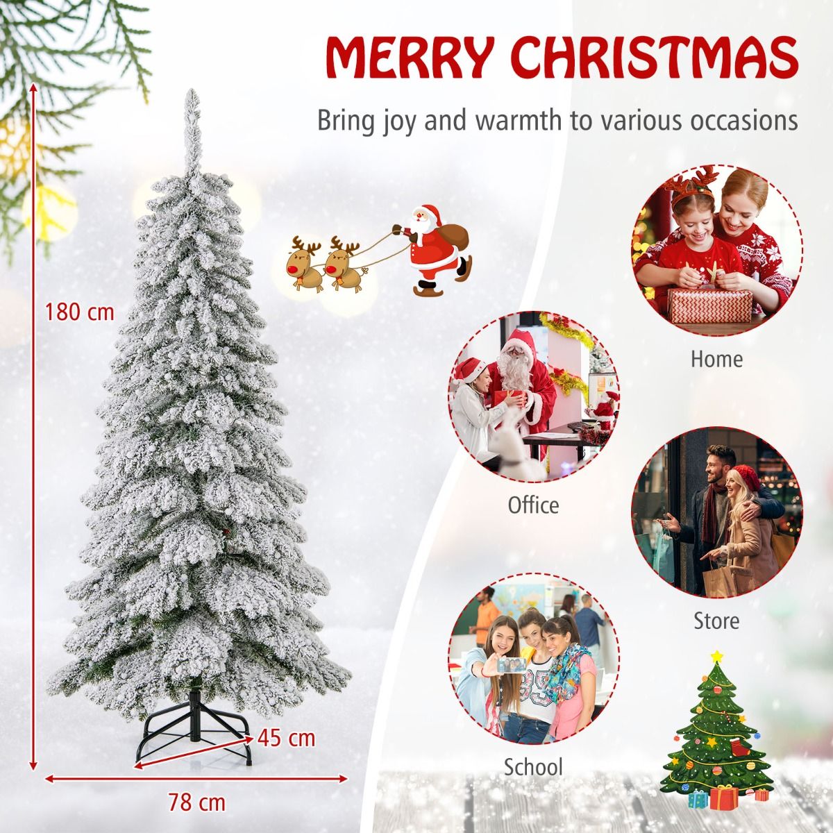 Natural and Vivid Appearance: This 180 cm artificial Christmas tree adopts a natural layered spruce look with 697 lush branch tips, which bend gracefully under the delicate weight of pristine snow, adding depth and dimension. Moreover, the tree is covered with thick snow flocking, bringing the beauty of winter indoors.