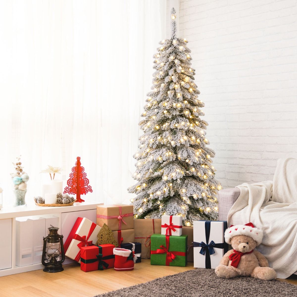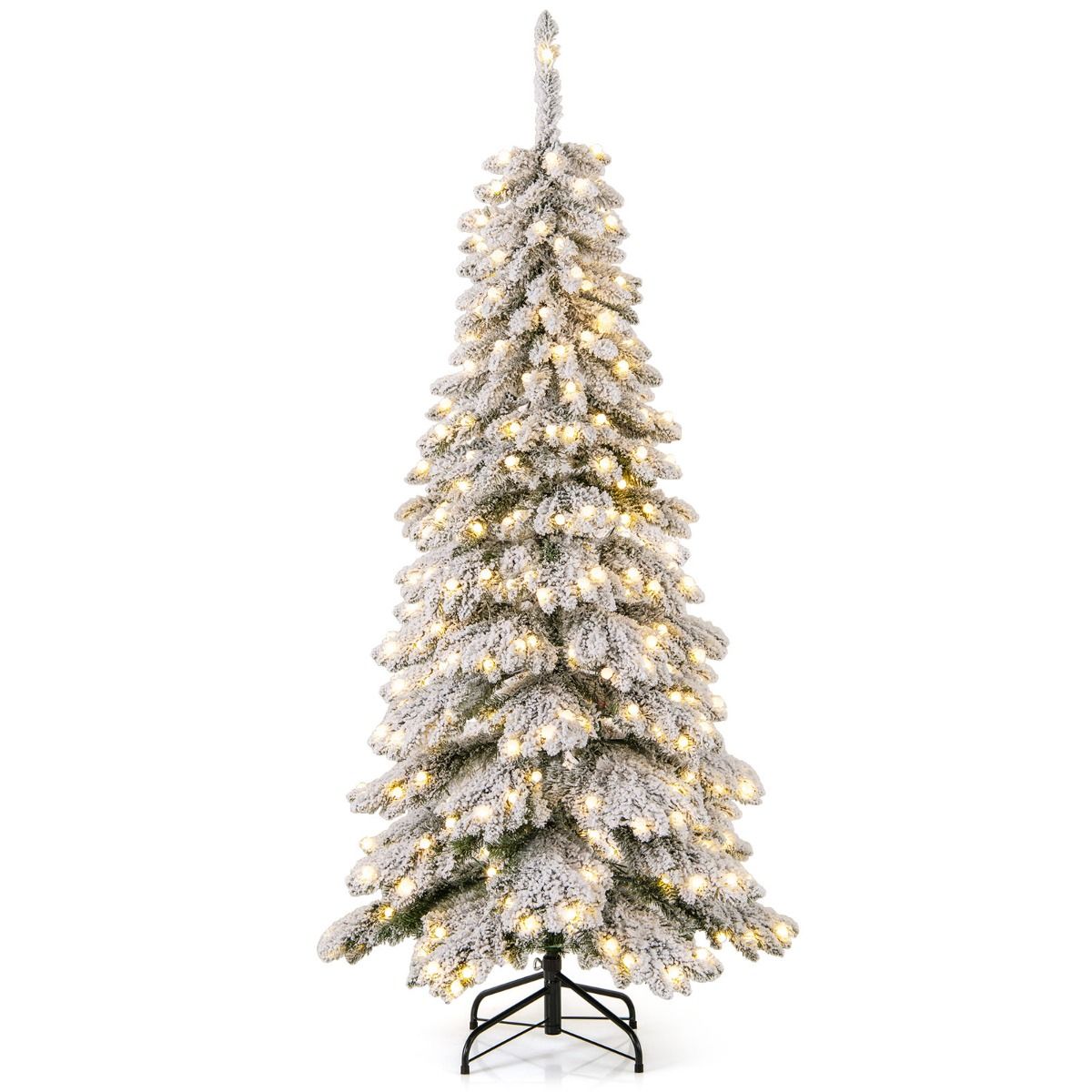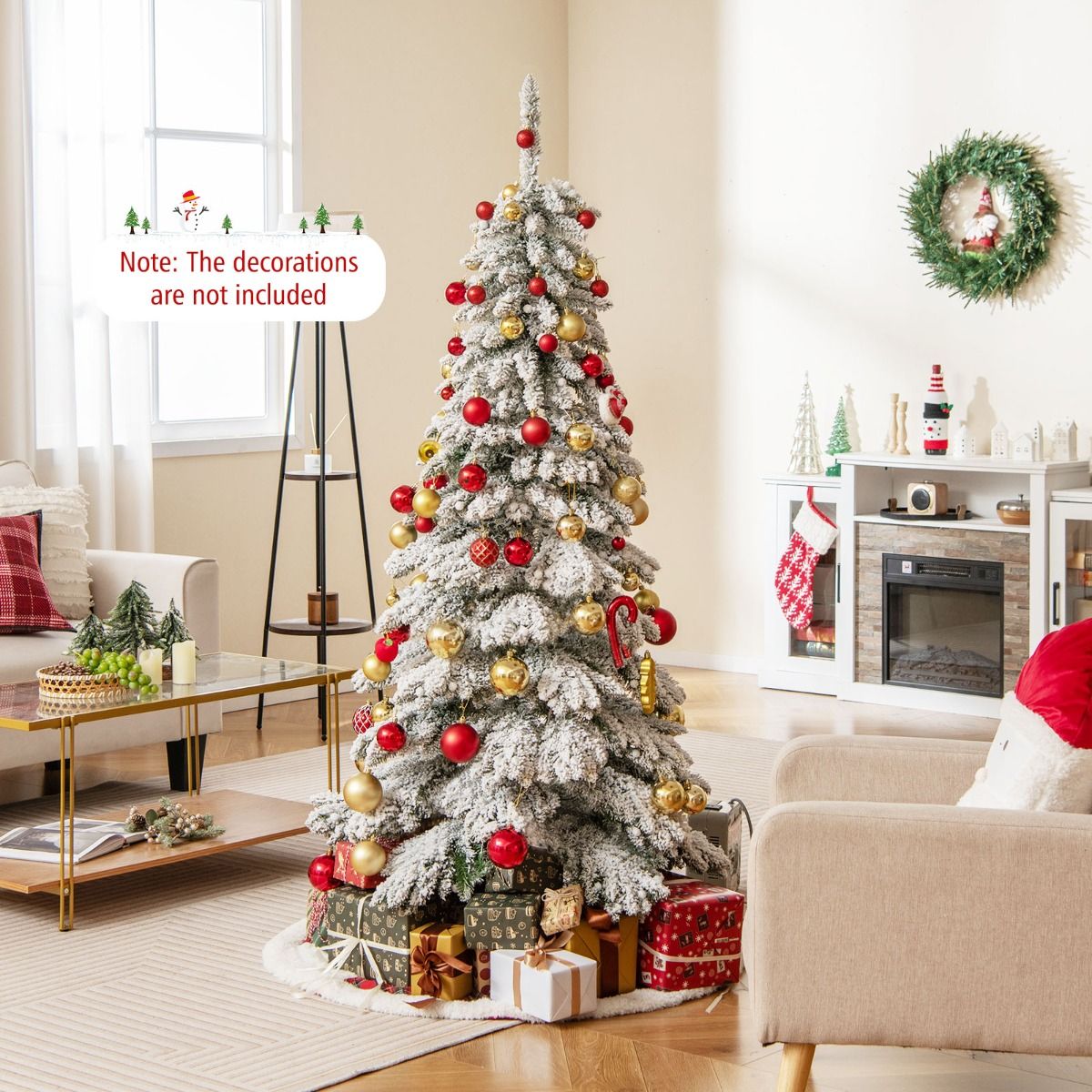 Natural and Vivid Appearance: This 180 cm artificial Christmas tree adopts a natural layered spruce look with 697 lush branch tips, which bend gracefully under the delicate weight of pristine snow, adding depth and dimension. Moreover, the tree is covered with thick snow flocking, bringing the beauty of winter indoors.