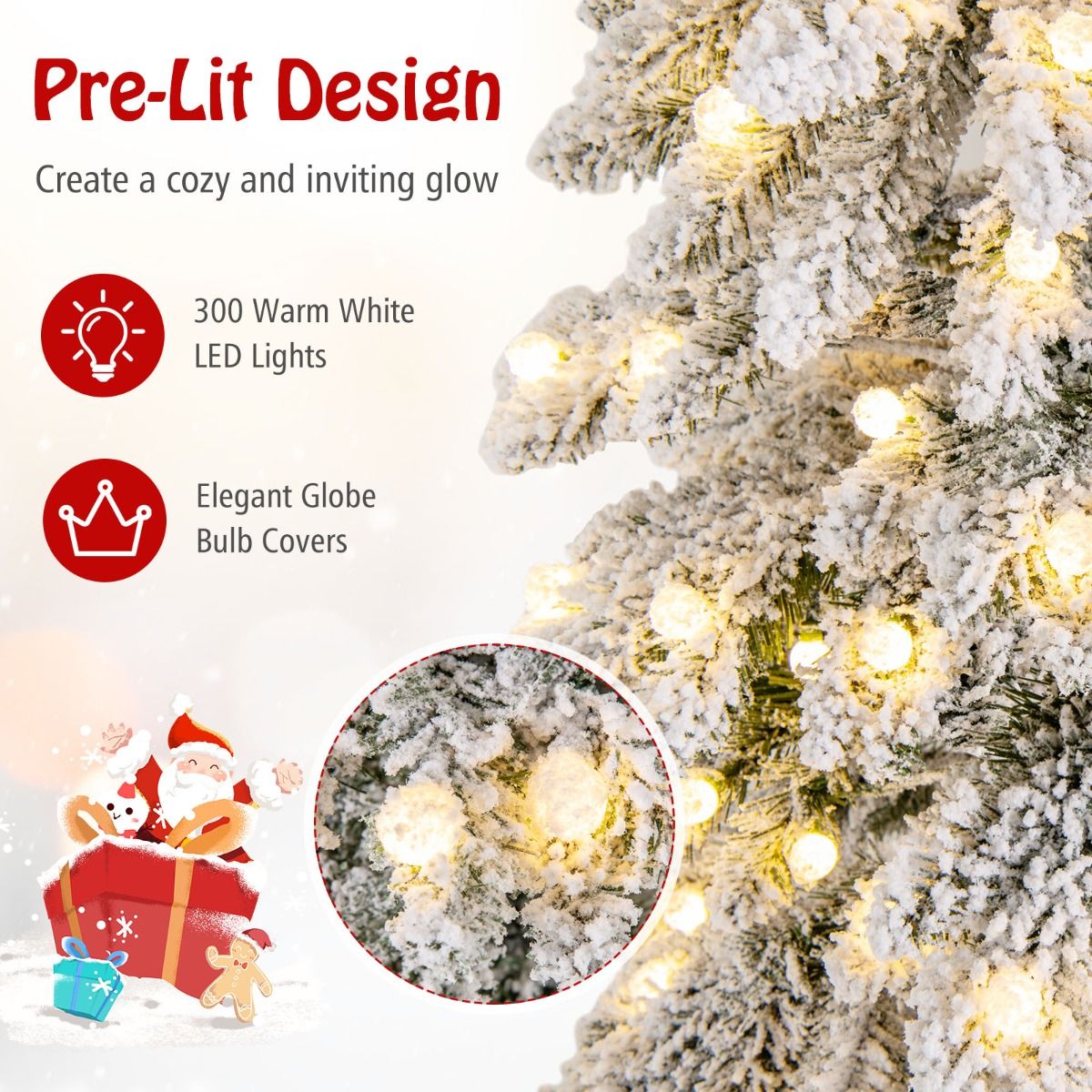 Pre-Lit Design: This lighted Xmas tree is adorned with 300 warm white LED lights, which emit a soft and cozy glow for a welcoming atmosphere. And the lights are covered with elegant globe bulbs, adding a touch of sophistication to your holiday decoration.