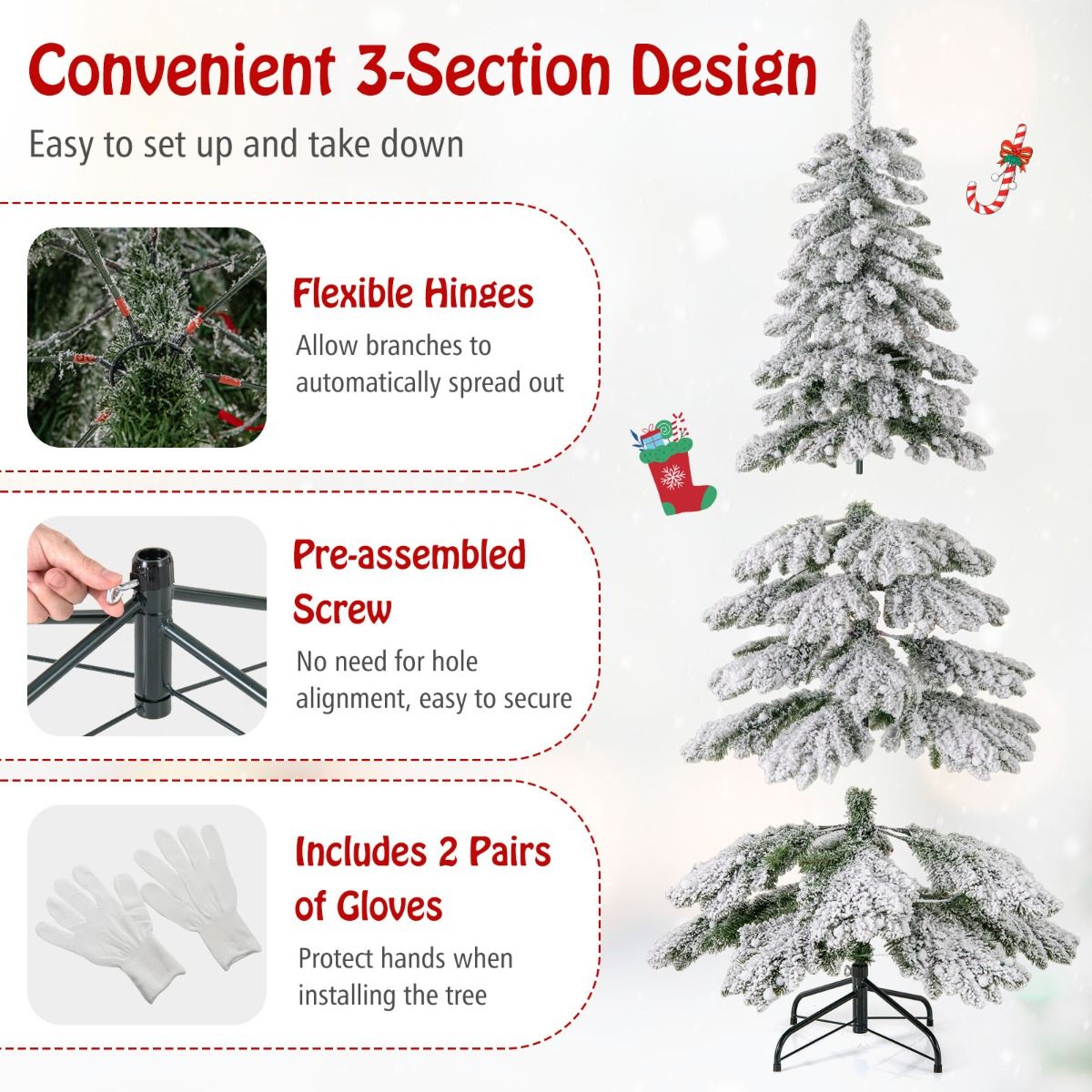 Easy Installation: This holiday tree comes in 3 sections that easily fit together, and the foldable base is equipped with a pre-assembled screw, requiring no need for hole alignment. The branches adopt flexible hinges attached to the trunk, making them automatically spread out, simplifying the process.
