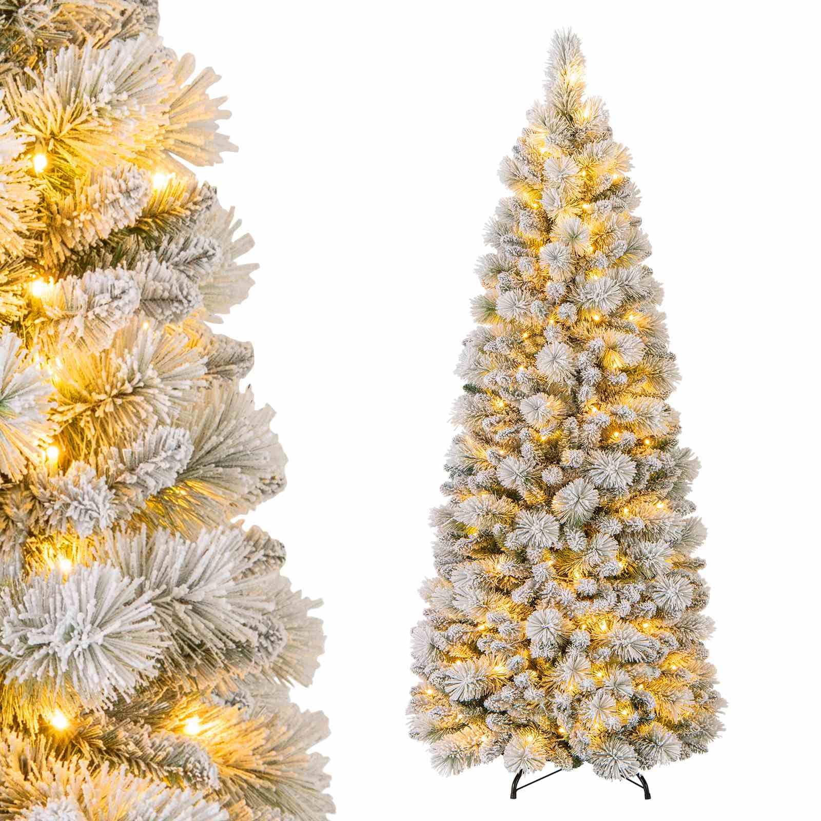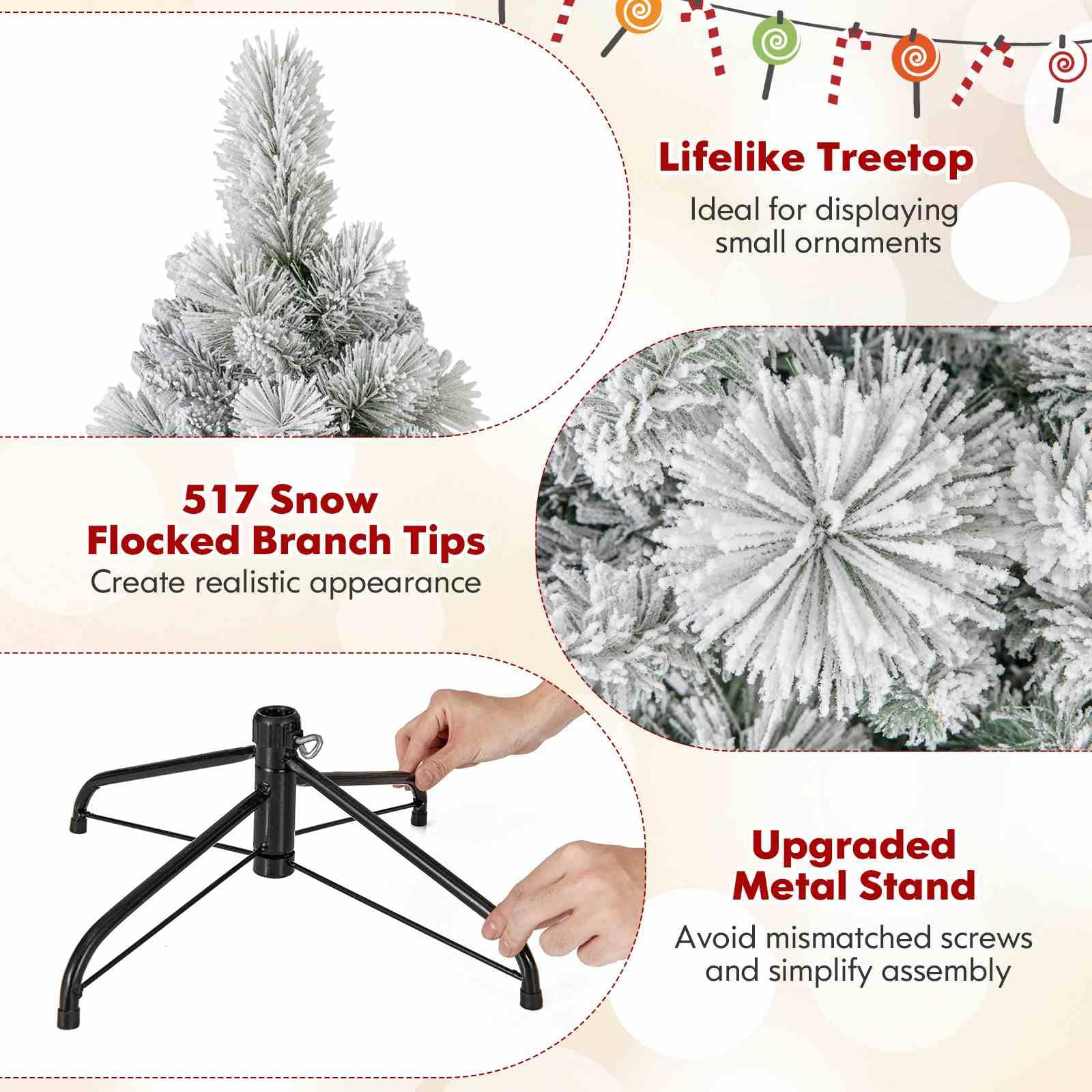 Lush Winter Charm: The Christmas tree boasts 517 vivid branch tips with realistic pine needles and elegant white flocking, replicating a fresh, snow-kissed winter scene. The full-bodied, natural appearance ideally enhances your festive decoration.