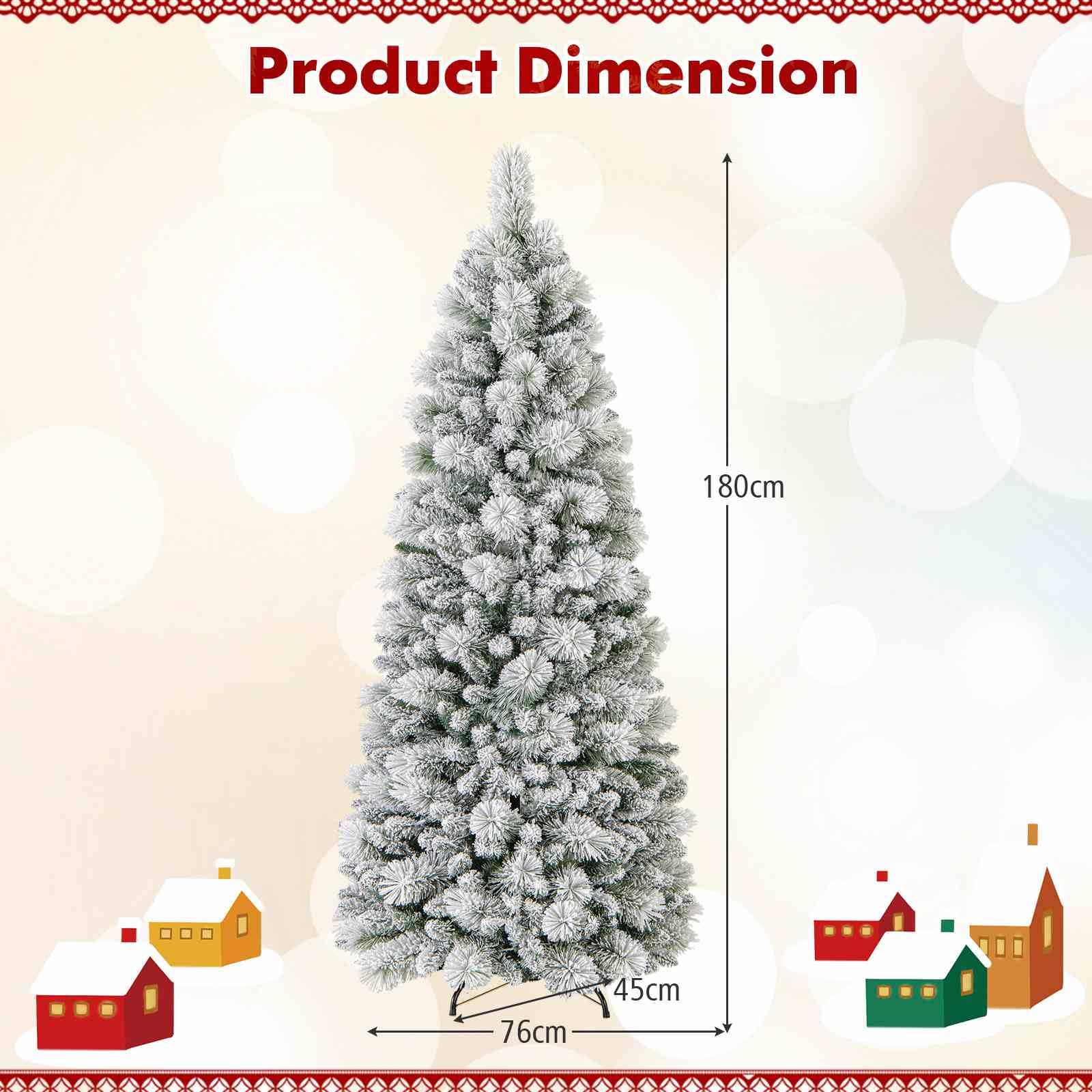 180CM Flocked Lighted Christmas Tree with Pine Needles and 517 Branch Tips