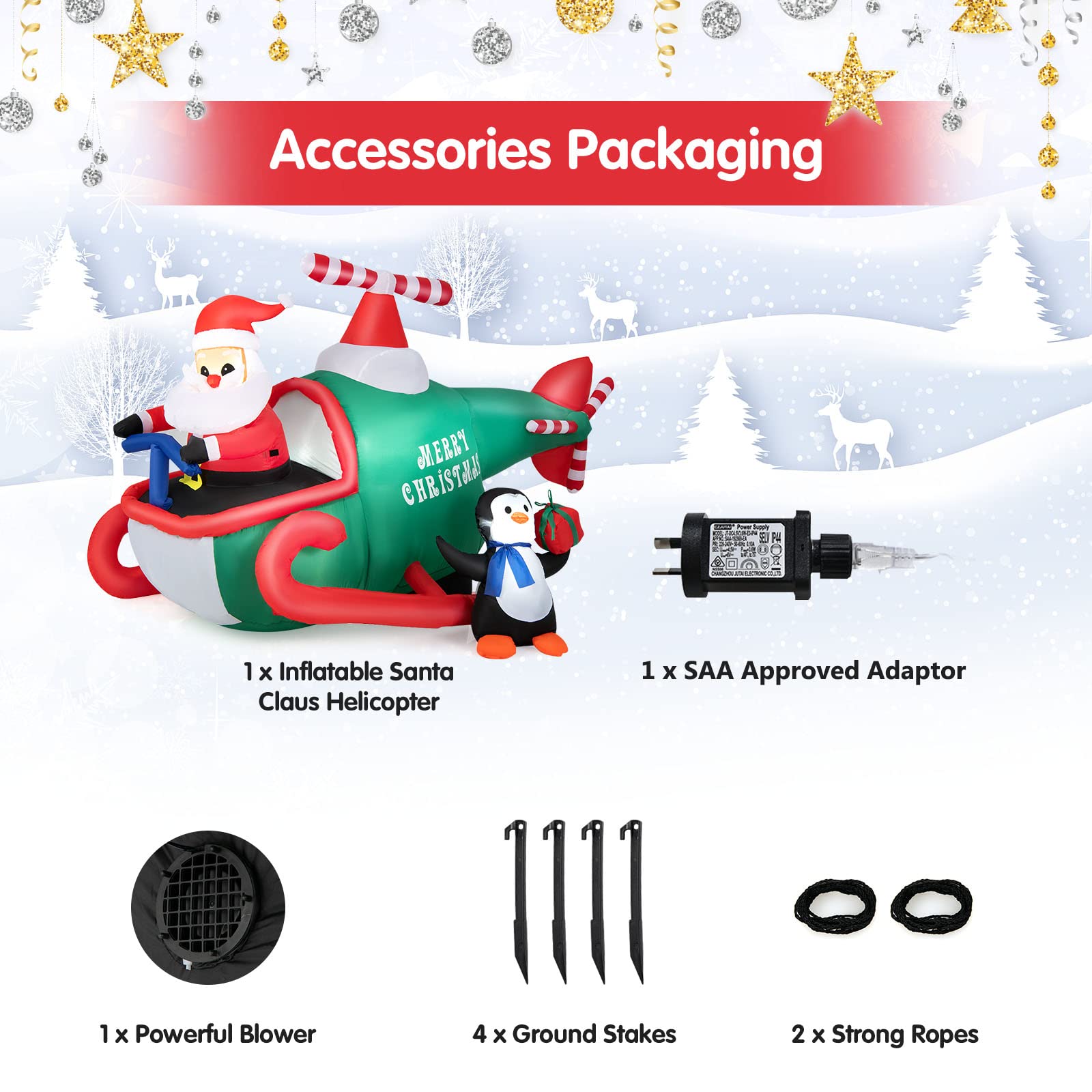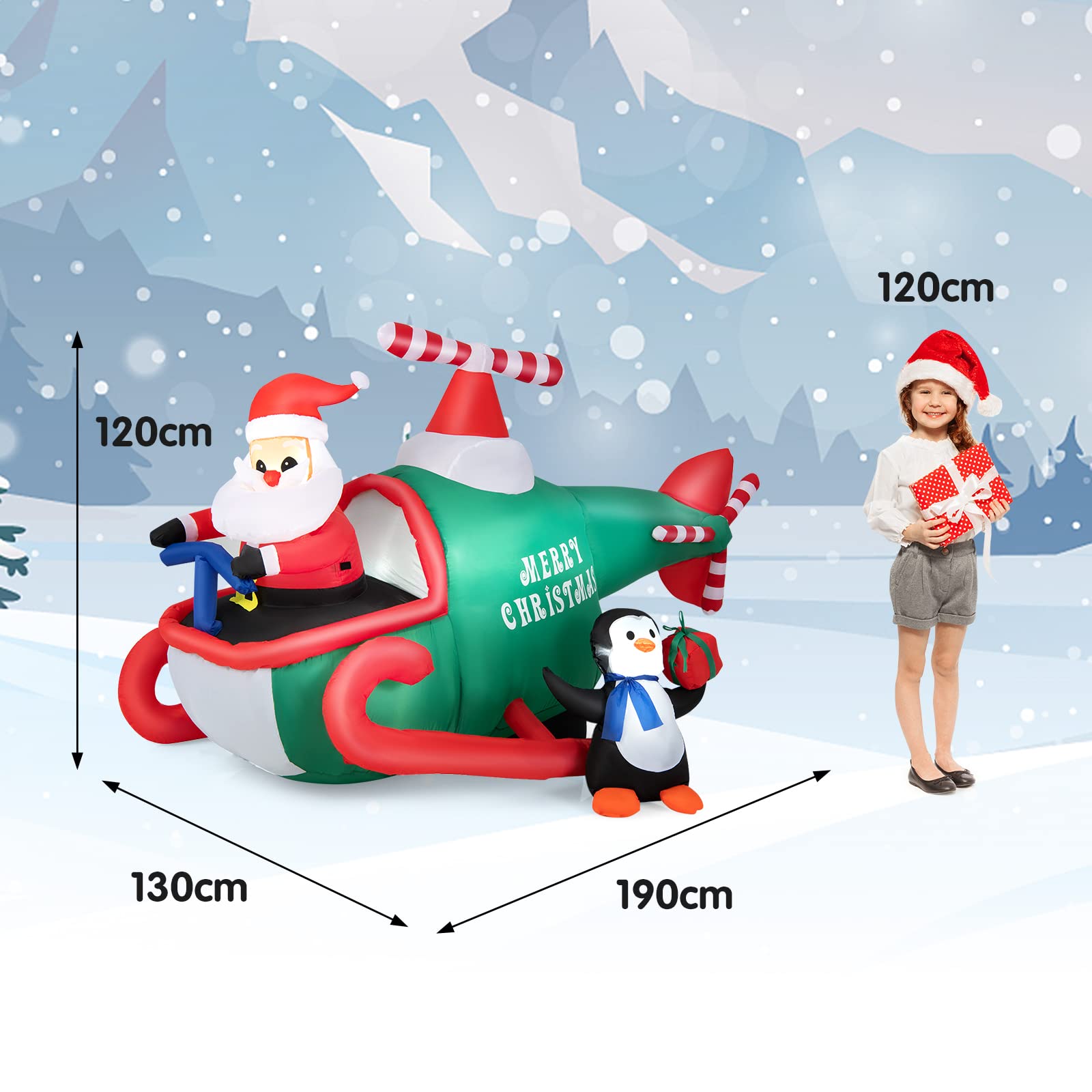 190CM Christmas Inflatable Santa Claus with Penguins on Helicopter