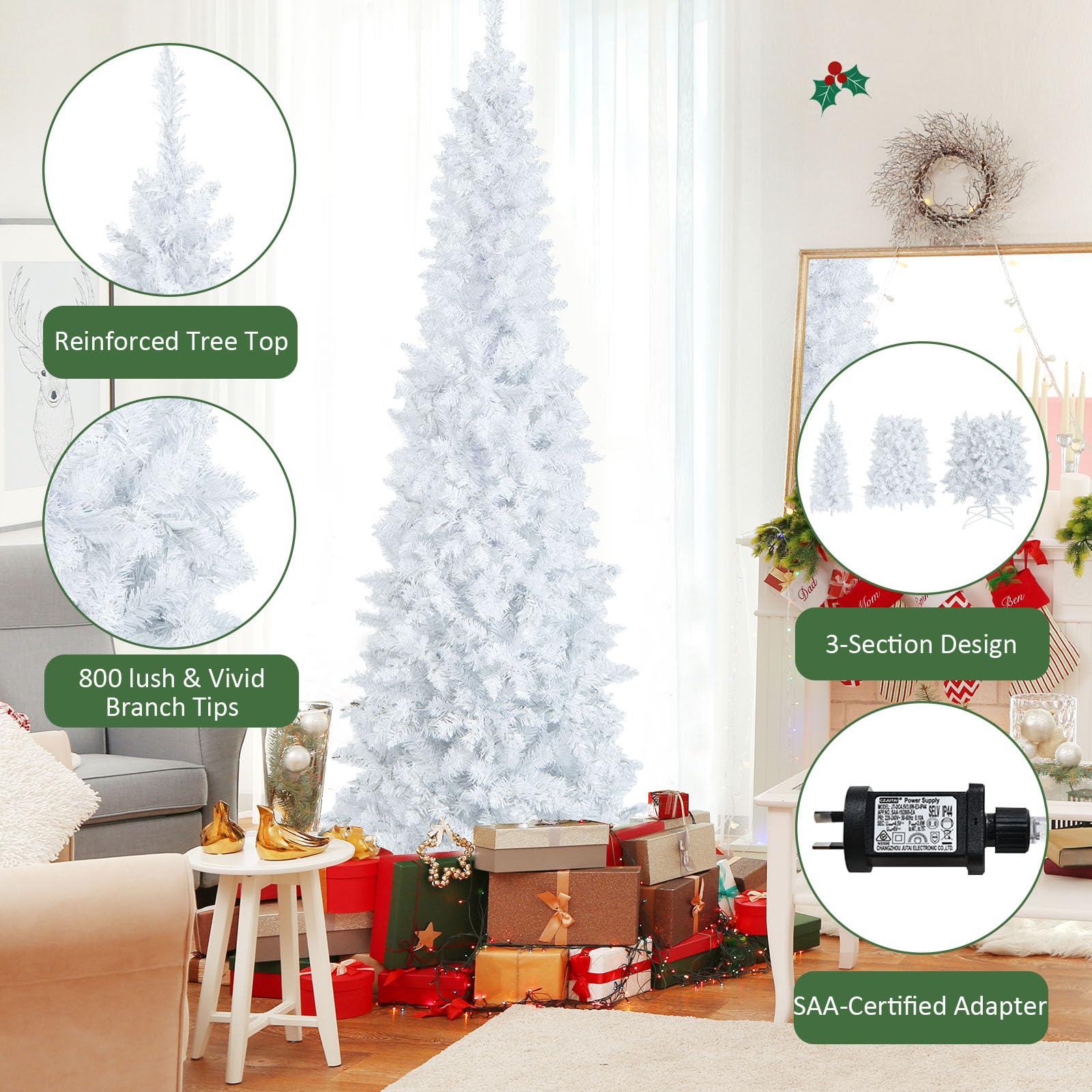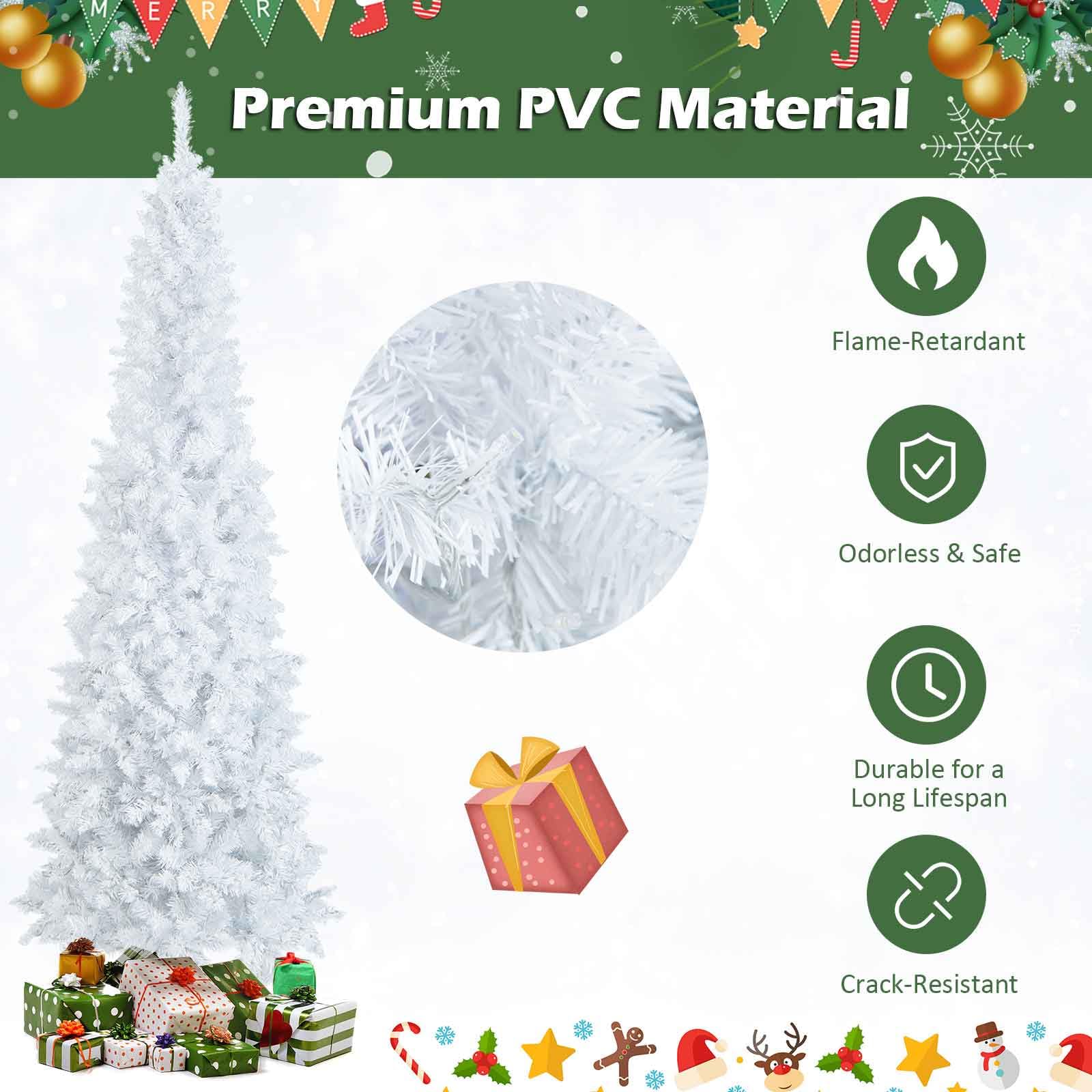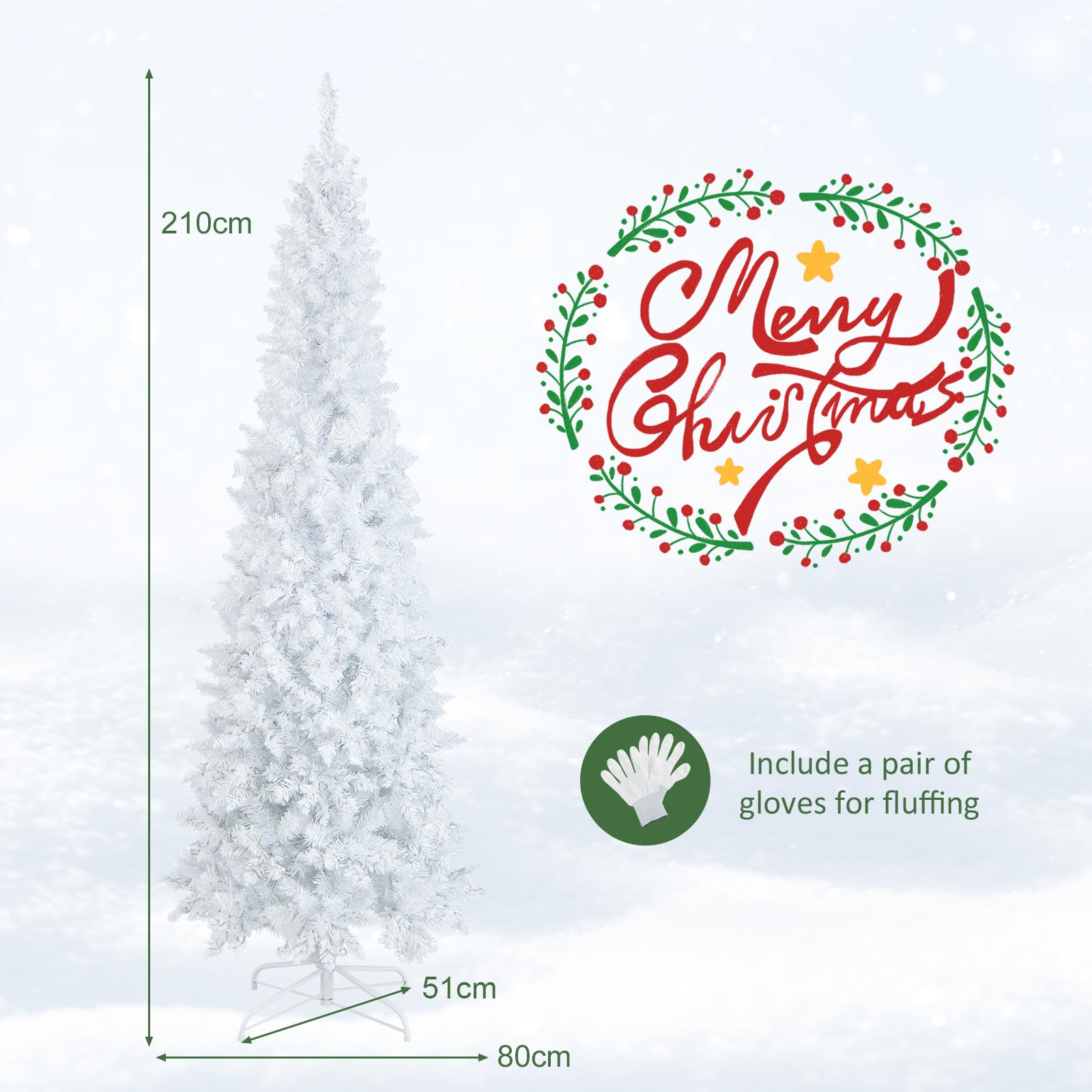 Slim Pencil Shape: The tall and slender Christmas tree measures 210 x 80cm (Dia. x H), which features a small footprint for placing in the center of the room or a corner. It can be a perfect holiday decoration for your living room, fireplace, stairs, front porch, shopping mall, restaurant, office, party, and more.