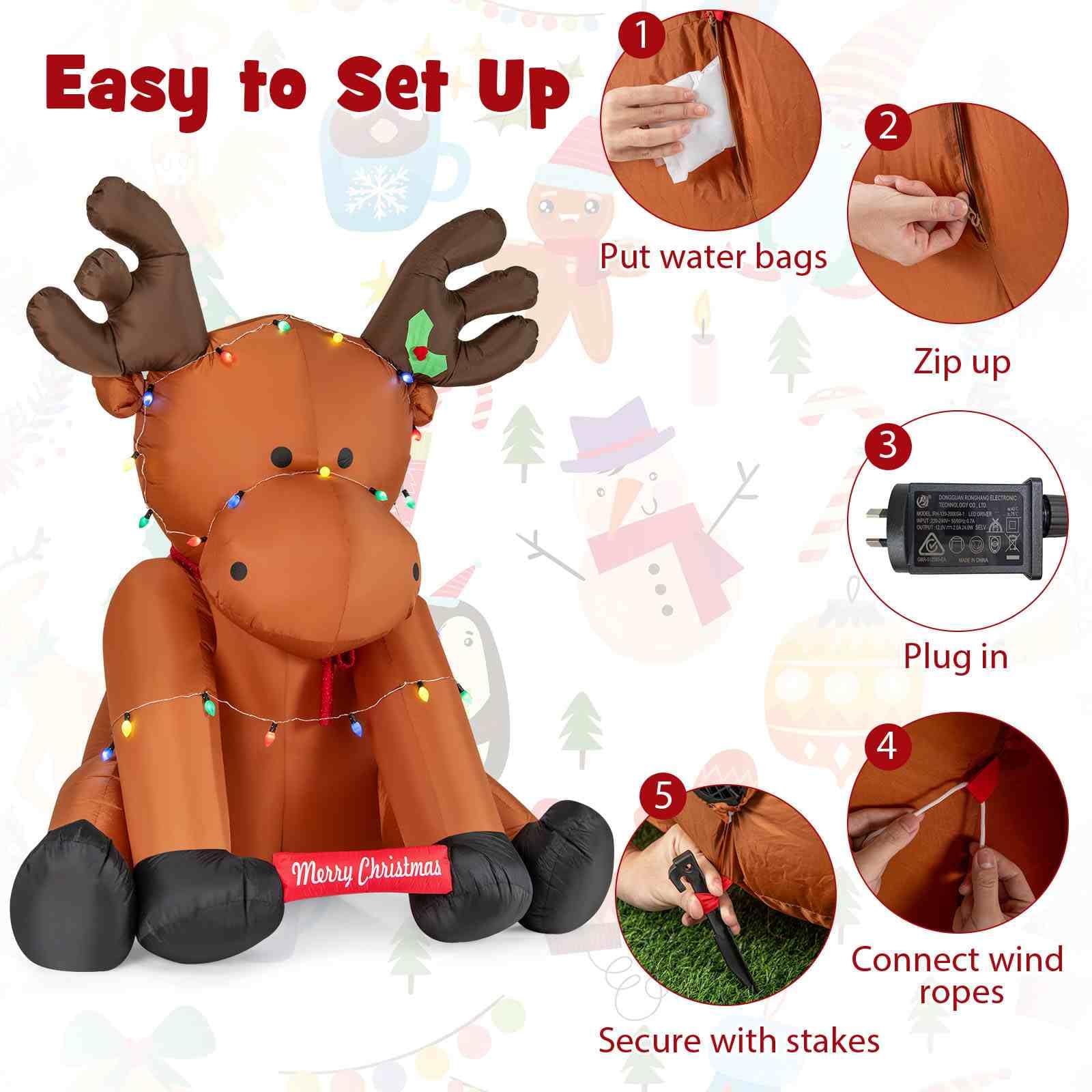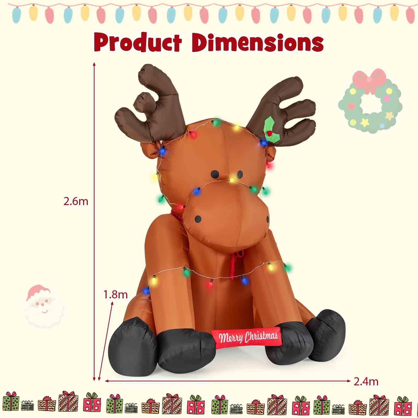 2.6M Tall Christmas Inflatable Reindeer Outdoor Decoration with 24 LED String Lights