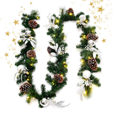 2.7M Christmas Garland Wreath with 50 LED Lights and Pinecones for Decorations