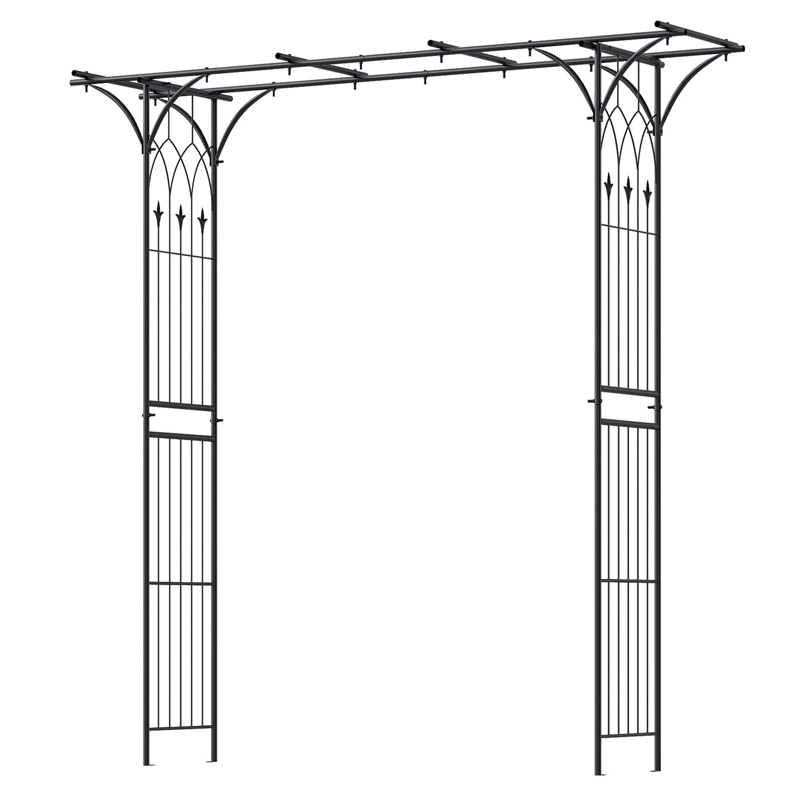 Classic & Elegant Design: Enhanced with a classic medieval-style spear tip finial, the metal arbor radiates charm in any setting, whether nestled in a backyard, gracing a lawn, or enhancing a garden space. The dimensions of the heavy-duty archway measure 204 x 49.5 x 207 cm (L x W x H).