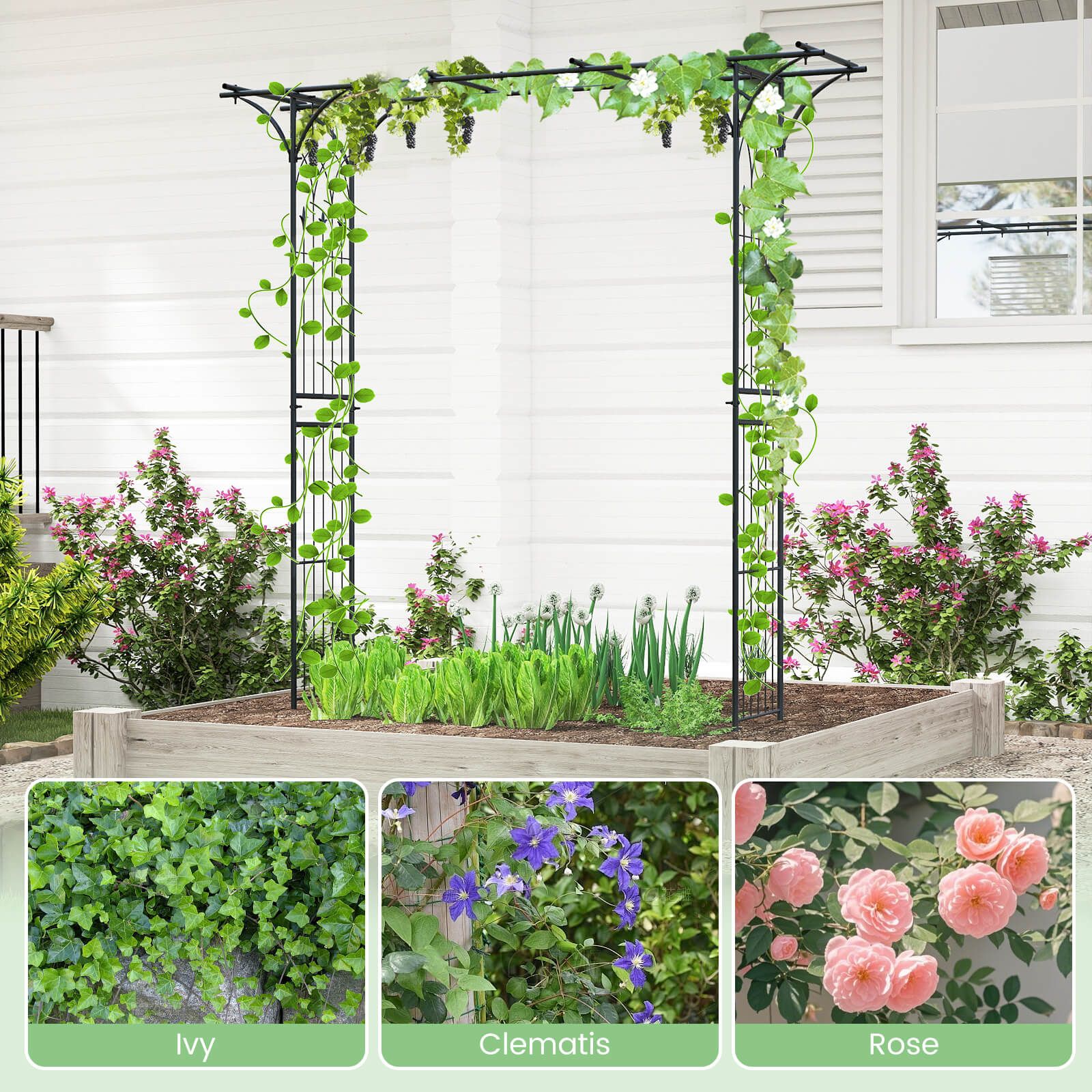 207 cm Flat Top Garden Arch with Trellises for Climbing Plants Outdoor Decor