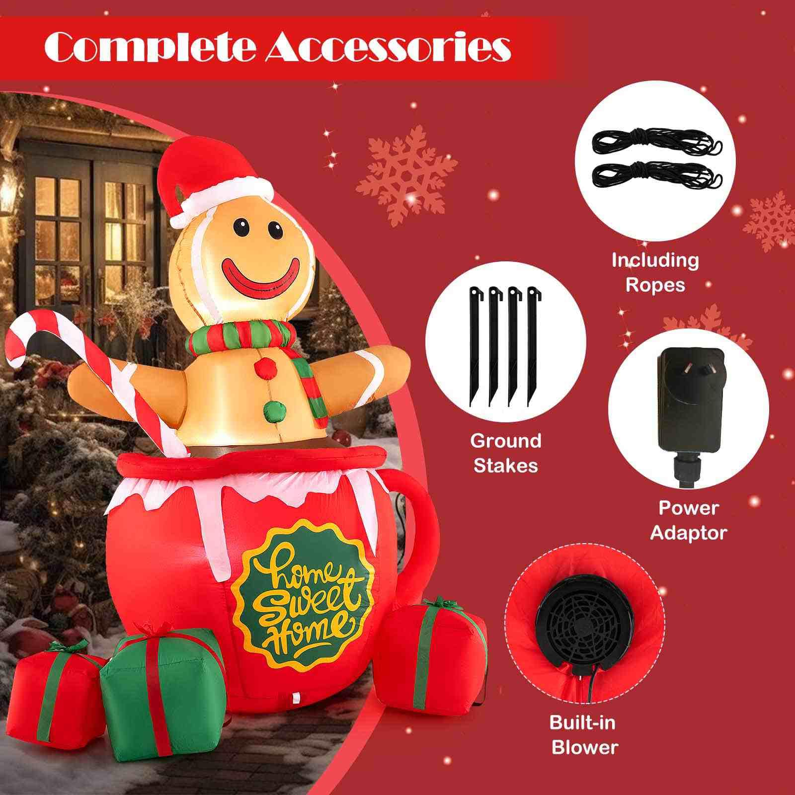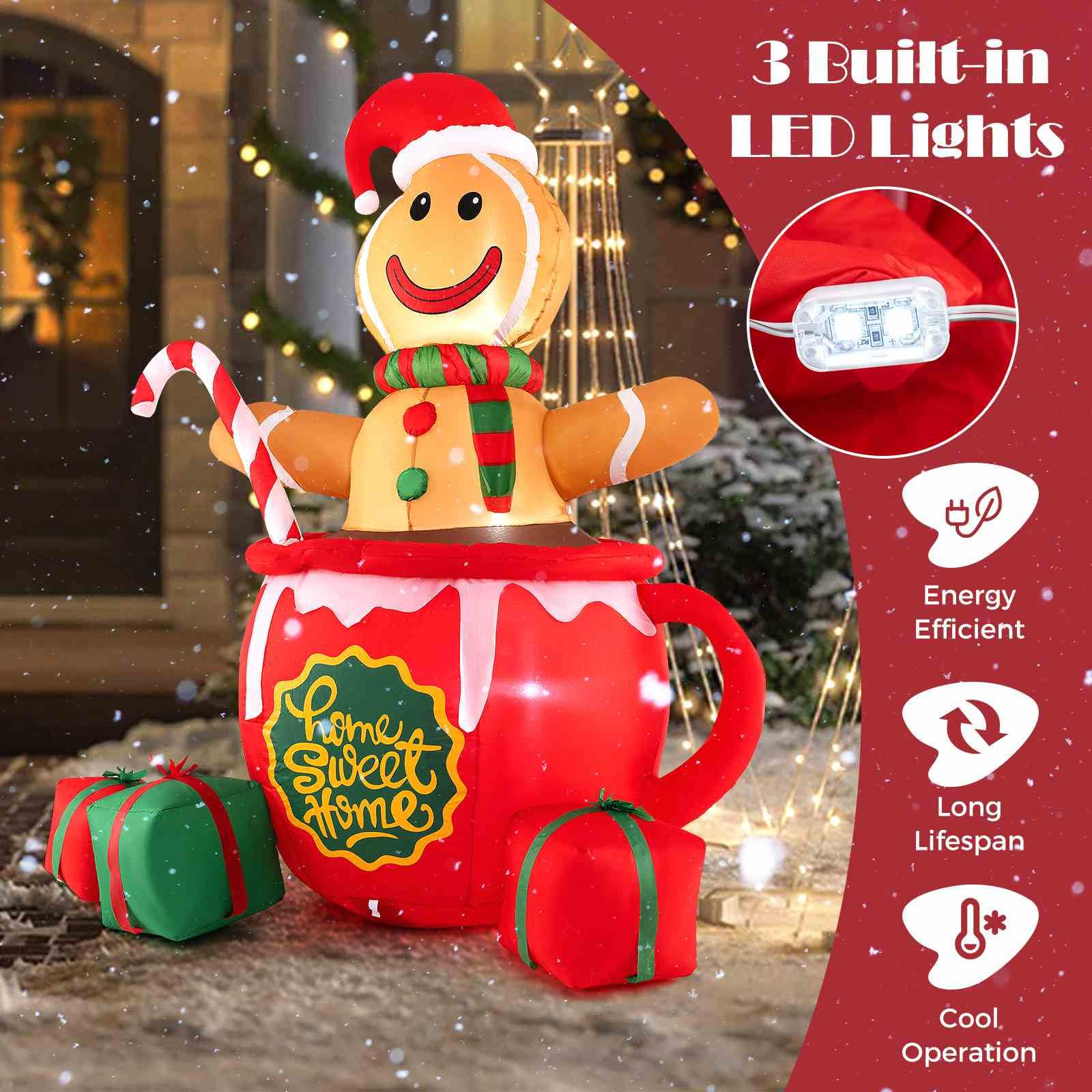210CM Inflatable Gingerbread Man in Hot Cocoa Mug with LED Lights