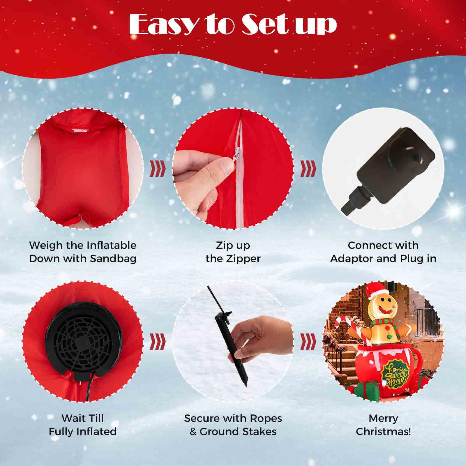 Quick and Simple Inflation: Equipped with a powerful blower and safe power adapter, this blow up gingerbread man inflates rapidly. Just unzip, plug in, and within minutes, you will have a fully inflated holiday decoration ready to spread joy.