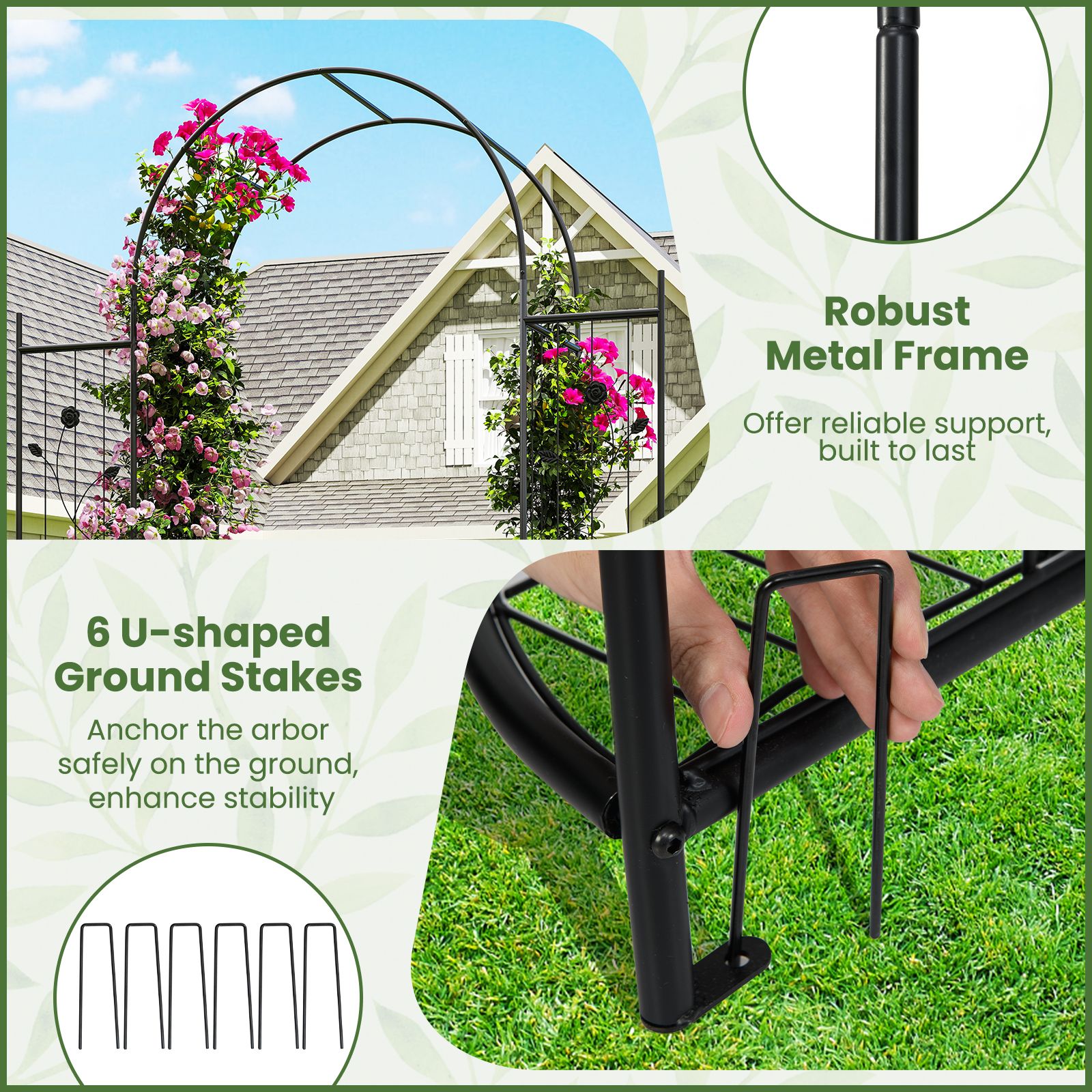 Stable and Reliable Construction: Constructed with a robust metal frame, this garden archway is designed to endure. It includes 6 U-shaped ground stakes for additional stability, ensuring the arch stands firmly against the elements.