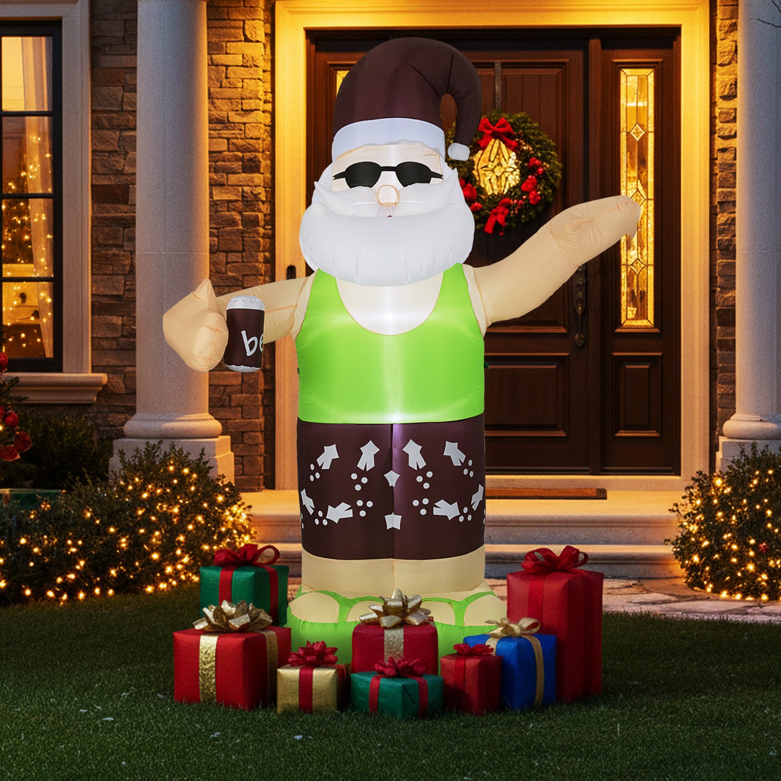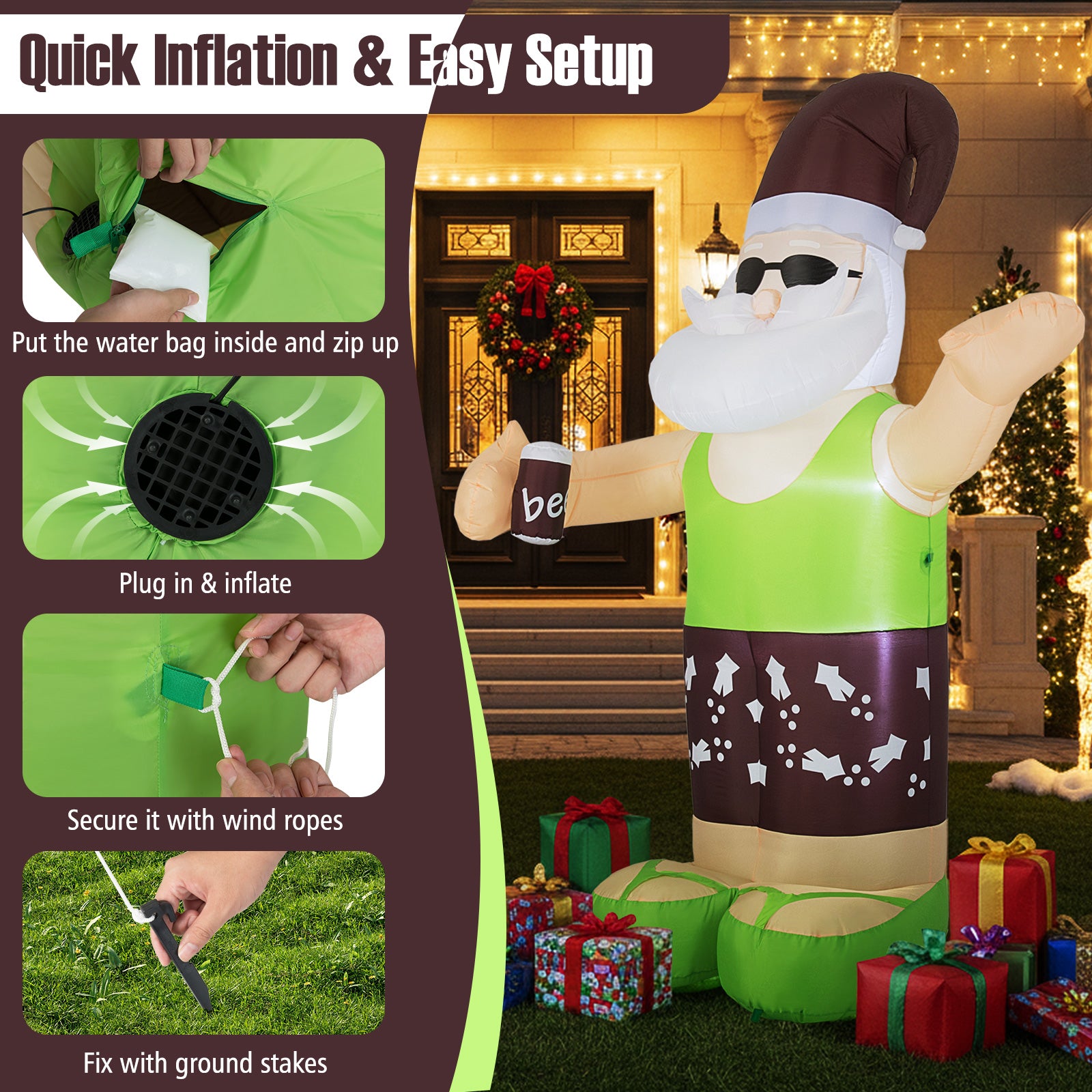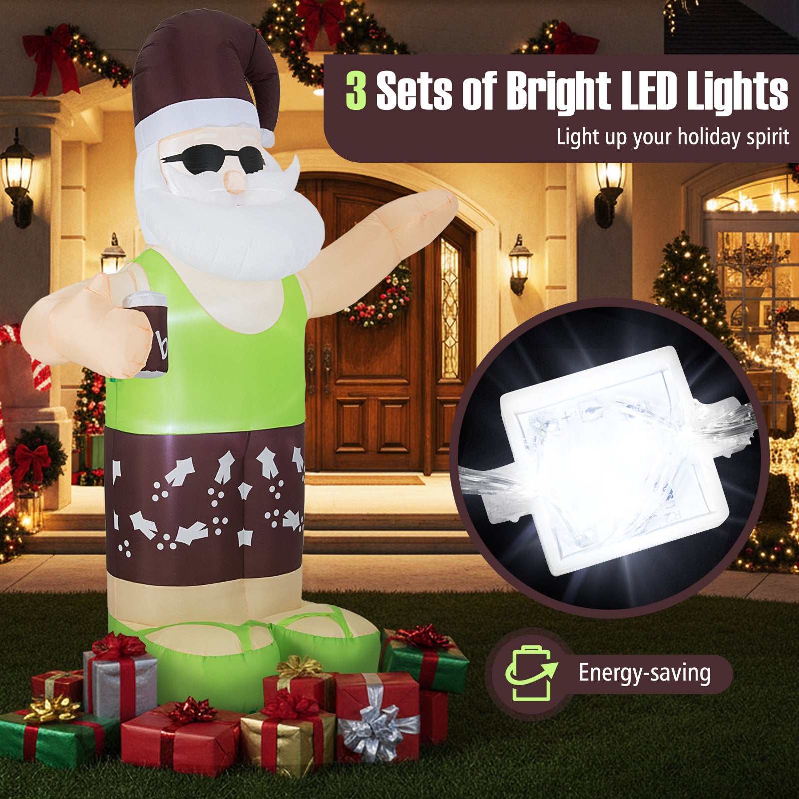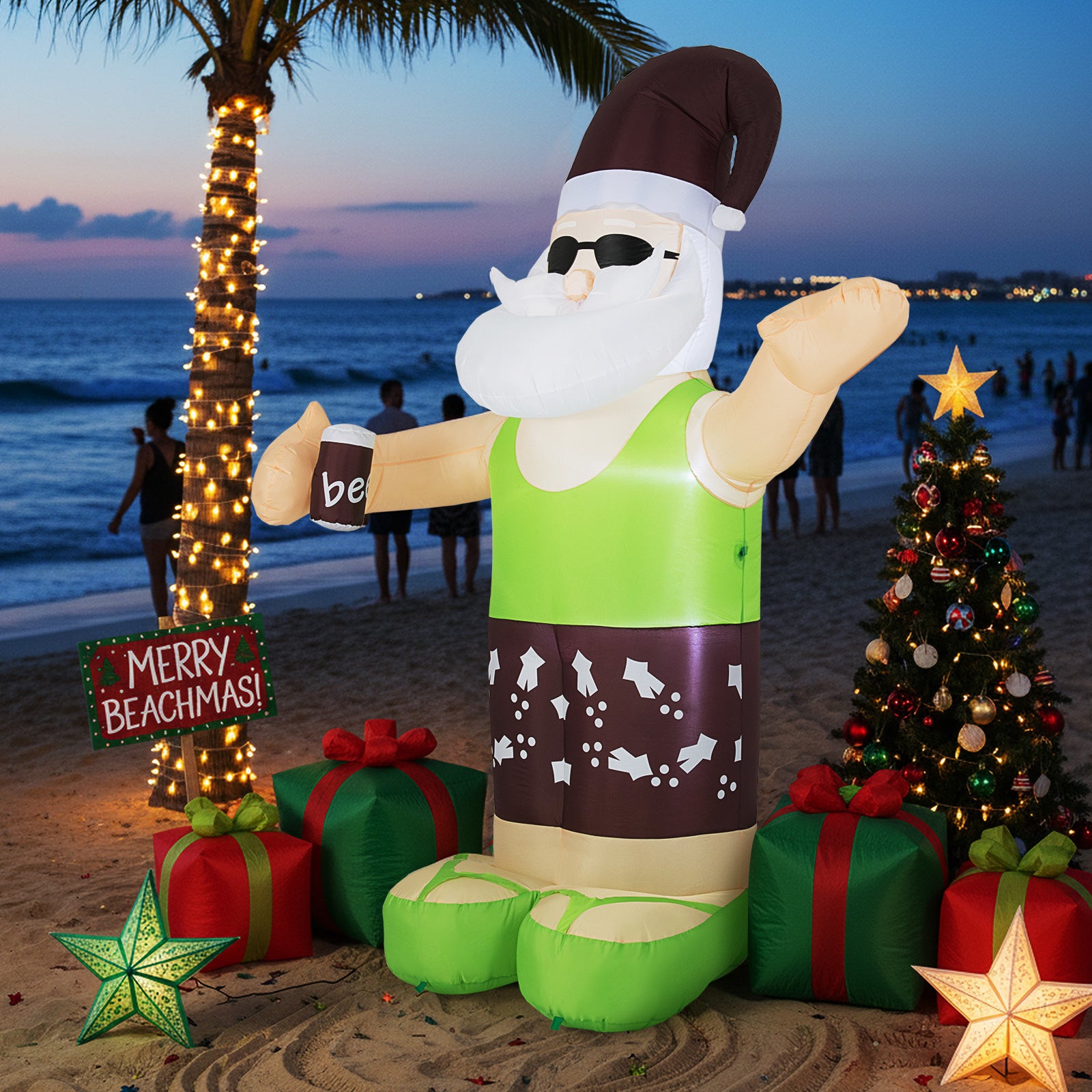 250 CM Christmas Inflatable Decoration, Blow up Tropical Santa on Beach with Bright LED Lights