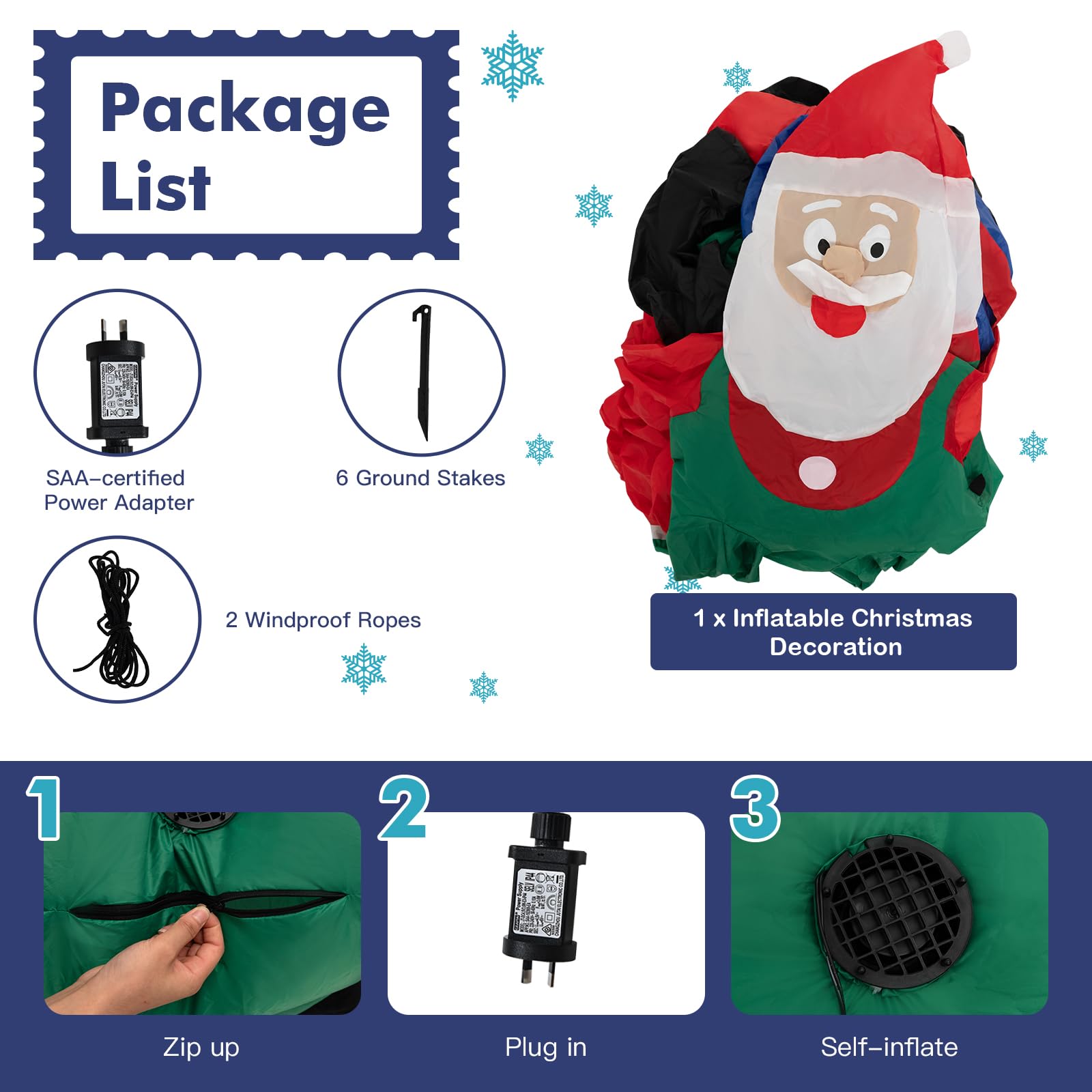 Durable Material & Fast Inflation: Our Christmas inflatable decoration is made of premium polyester fabric, which is well-sewn, light and durable, weatherproof and fade-resistant. Equipped with a powerful fan and SAA-certified plug, the blow-up decor can be fully inflated in just seconds.