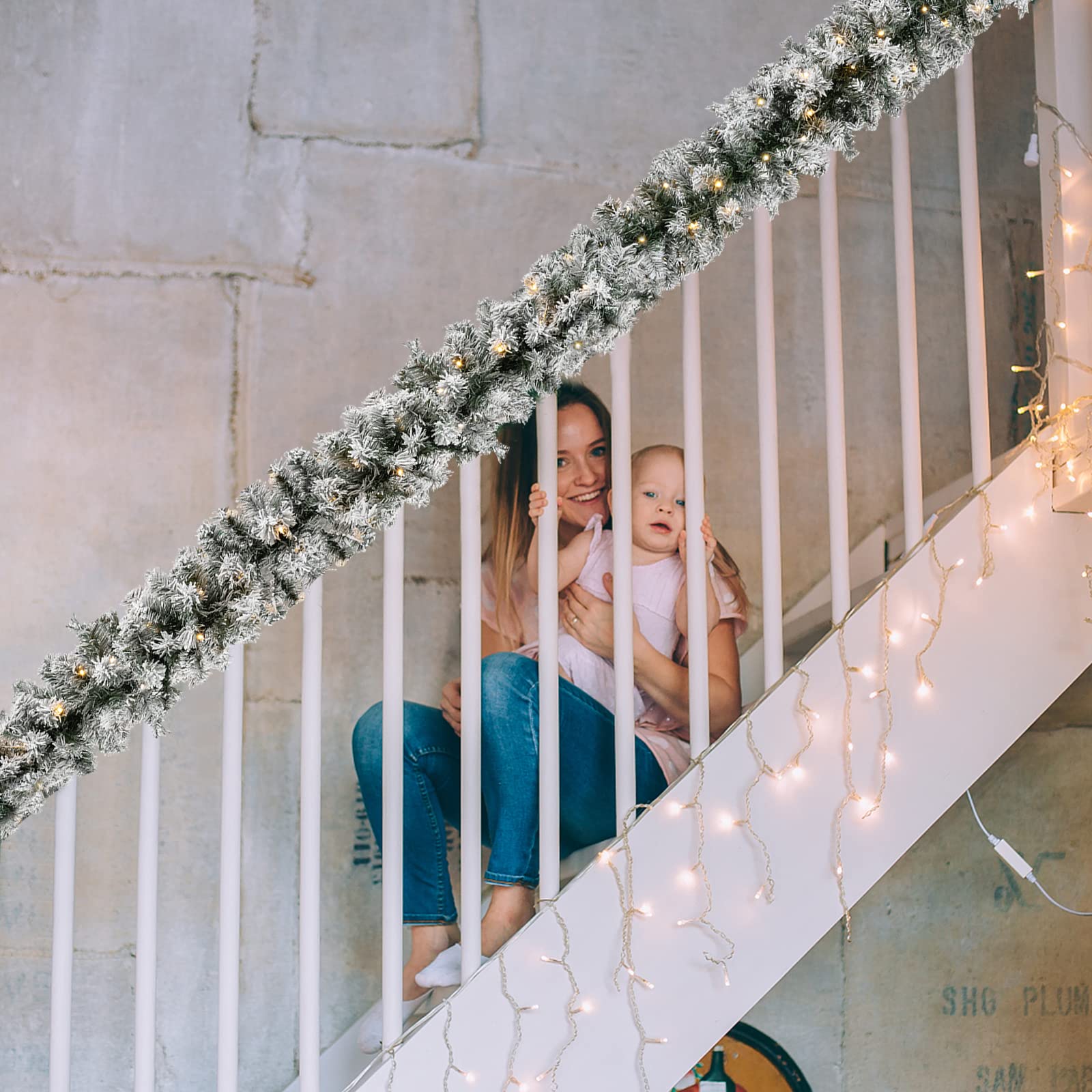 Dreamy Warm White Lighting: Among staggered branches, there are evenly distributed LED lights, lighting up the Christmas rattan in the nighttime to create a loving holiday vibe. Especially at a party, the warm white lighting will deliver your sincere blessings to all guests.