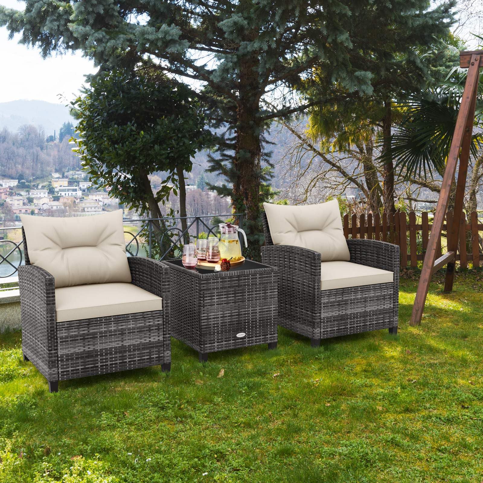 This 3-piece patio rattan sofa set is perfect for you to spend leisure time outdoors.